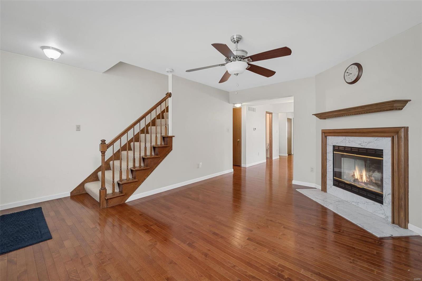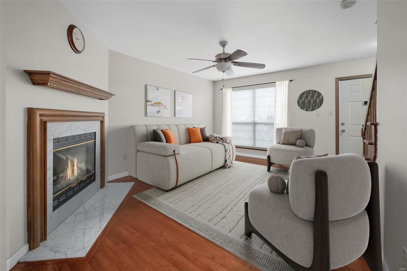 Oppurtunity Awaits!! These condos with this floor plan do not come to market often! Community Pool included! 2 bedroom townhouse with 2 full baths upstairs and a half bath on the main level with a full basement. Main level shines with genuine hardwood floors, neutral paint, and modern fixtures and blinds. A spacious open floor plan expands the main level with a fireplace, bay window, planning desk and garden window overlooking the back patio and large greenspace maintained by the association. A dedicated dining area is perfect for family meals or a nice breakfast while enjoying the view out of the bay window. Upstairs offers a spacious master bath and guest bedroom both with ensuite full baths. Newer Carpet with plush padding is a added bonus to this space. Located right off Jungerman Rd and Dingledine Rd with easy access to 364 and Hwy 94. Monthly condo fee includes water, sewer and trash, exterior maintenance, some insurance and snow removal service for the unit. SAVE ON UTILITIES!