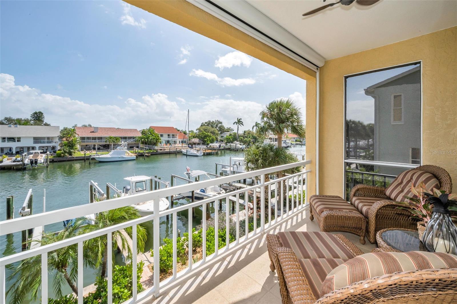 Welcome to this stunning 3-bedroom, 3.5-bath townhome with a tandem 2-car garage, located in the highly sought-after community of Tierra Verde. Perfectly situated on a deep-water canal, this waterfront home is a boater’s dream and includes a 10,000-lb boat lift. The dock was rebuilt in 2022, and the roof was just replaced in 2025 for added peace of mind. Inside, you’ll find a beautifully updated kitchen with quartz countertops, custom plantation shutters throughout, and hurricane-impact windows and doors—including a newly replaced skylight—that provide both safety and energy efficiency, as well as a full deduction on homeowners insurance. Three private balconies, two with serene water views, offer the perfect setting for entertaining or simply enjoying the Florida lifestyle. With its unbeatable combination of luxury, upgrades, and waterfront living, this home is ready for its next owner.
