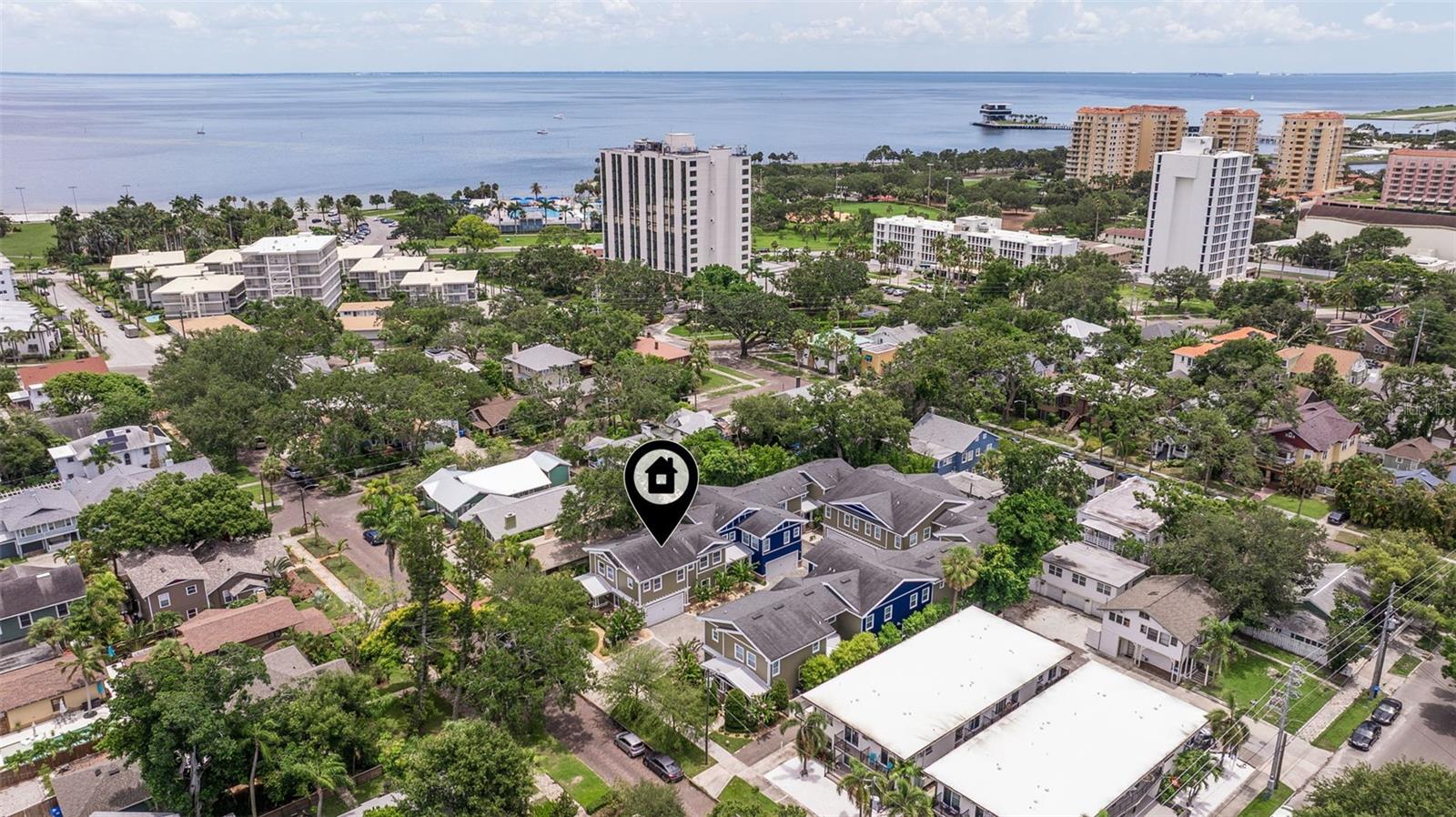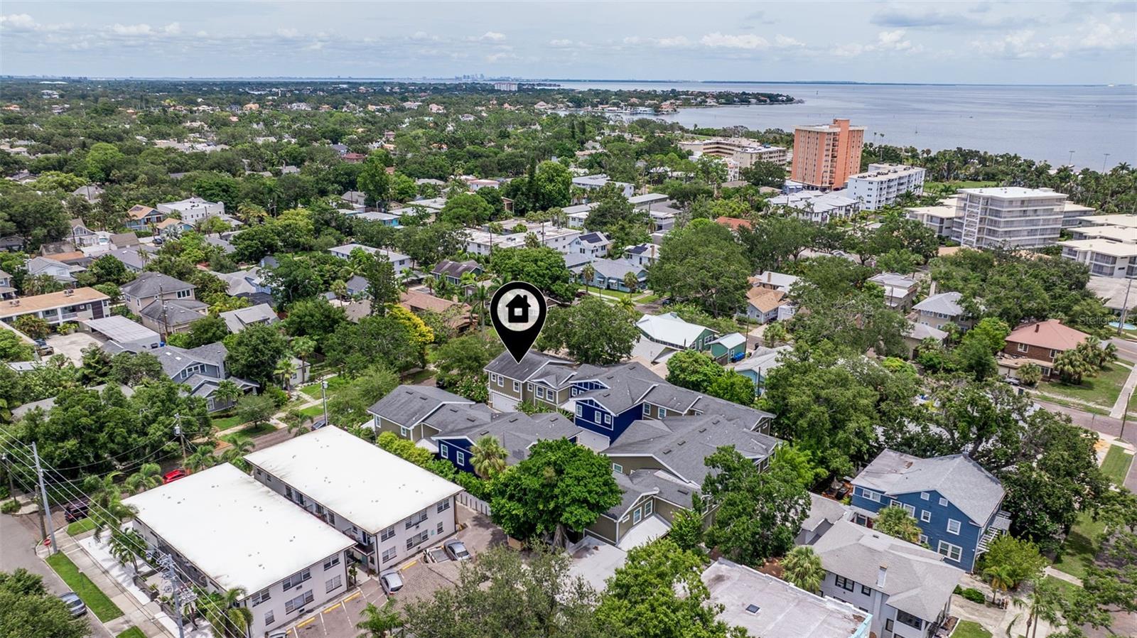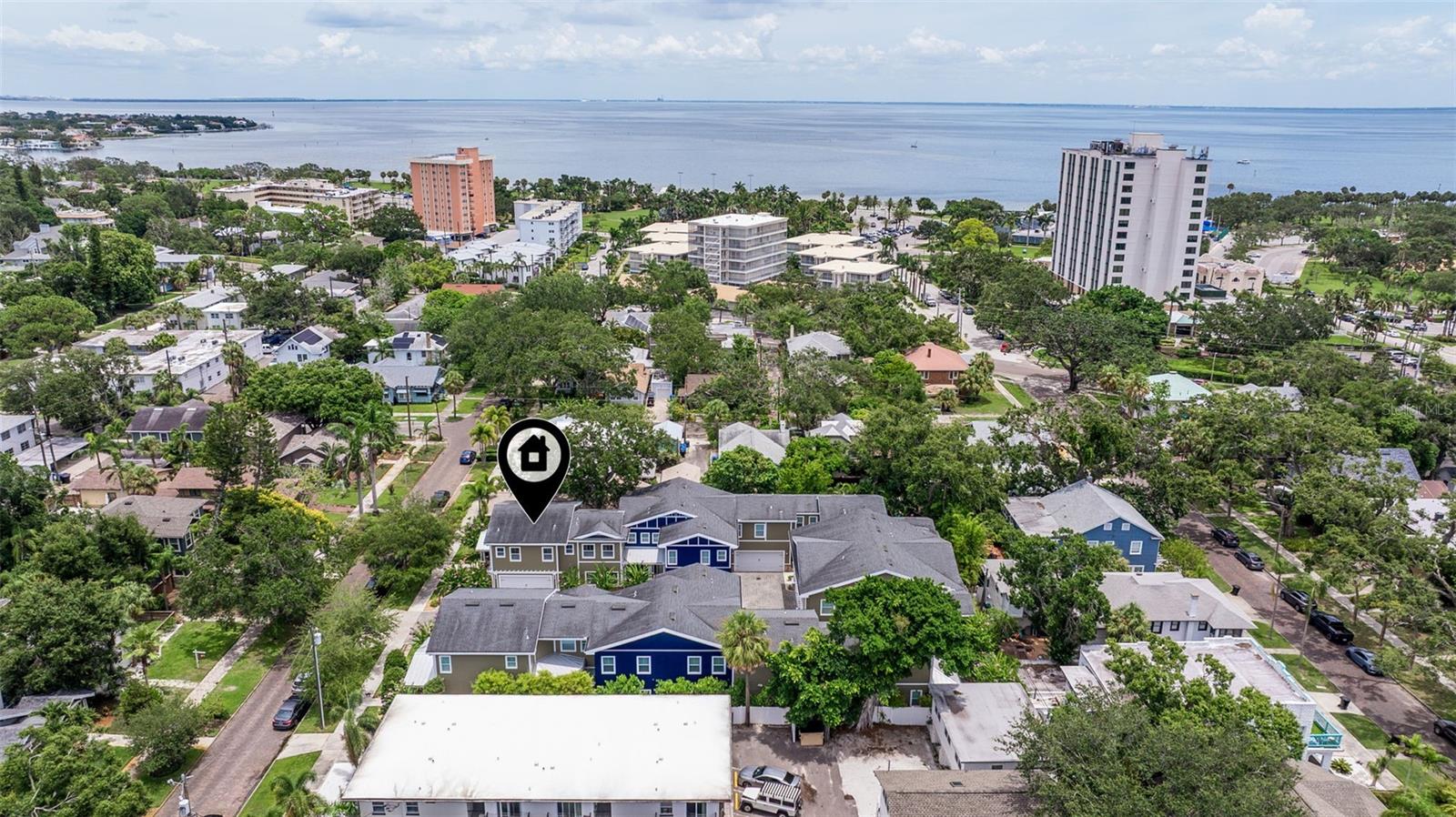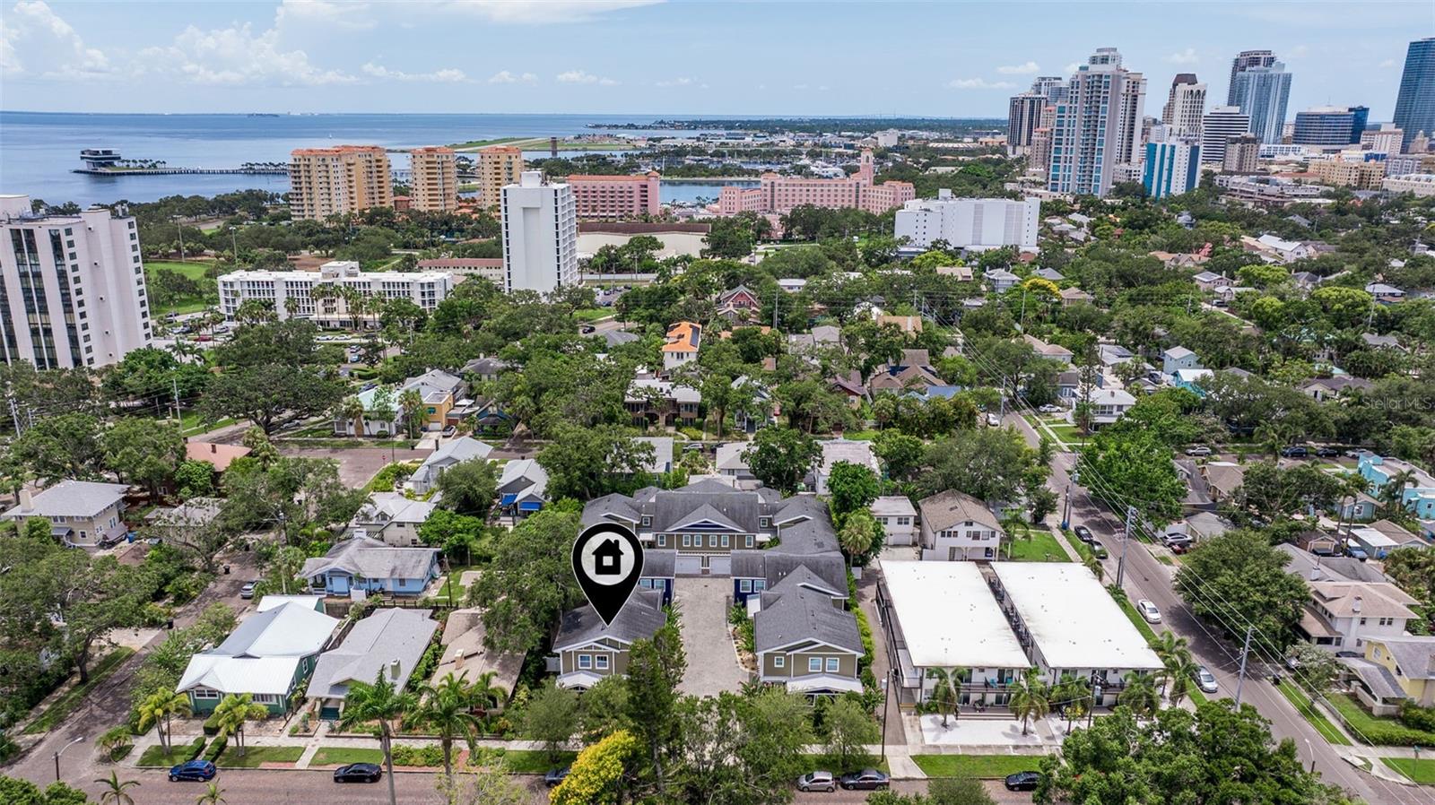 Located in the highly sought-after Historic Old Northeast neighborhood in a NON-FLOOD ZONE this impeccably designed 2-bedroom and den/bonus room, 2.5-bath townhome, built in 2017, offers the perfect blend of classic charm and modern convenience. With 2,096 sq ft of thoughtfully designed space, this two-story masonry block construction townhome is positioned at the front of a boutique 8-unit community, offering a single-family home feel with a large front porch featuring a charming swing and a private, cozy backyard ideal for outdoor entertaining or grilling. Just a 10-minute walk and six blocks from vibrant downtown, this home is in the perfect location. The open-concept first floor is designed for both everyday living and entertaining, featuring a spacious dining room and a beautifully appointed kitchen with custom soft-close solid wood cabinetry, quartz countertops, a stylish backsplash, and stainless steel appliances with natural gas range. The living room effortlessly transitions into the kitchen and overlooks French doors that lead to the private backyard. An oversized 2-car garage is seamlessly integrated into the home, offering easy access. Completing this level is a well-designed half-bath. Upstairs, you’ll find a spacious family room, a private laundry room, and a generously sized guest bedroom with an en-suite bathroom. The primary bedroom is a true retreat, complete with a large walk-in closet and a spa-like en-suite bathroom featuring an oversized frameless glass shower and premium fixtures. This home is loaded with thoughtful upgrades, including a new HVAC system (2024), wood flooring throughout, crown molding, custom blinds, hurricane-impact windows and doors, built-in closet systems, a built-in Murphy bed, ceiling fans in every room, and lush landscaping in the backyard. The entire home is equipped with a whole-house water filtration system, ensuring the utmost comfort and convenience. Located just moments from the vibrant downtown area, with its eclectic shops, acclaimed restaurants, and picturesque Tampa Bay waterfront, this move-in-ready townhome offers the ultimate in comfort, style, and location. Experience Florida living at its finest—schedule your private showing today!