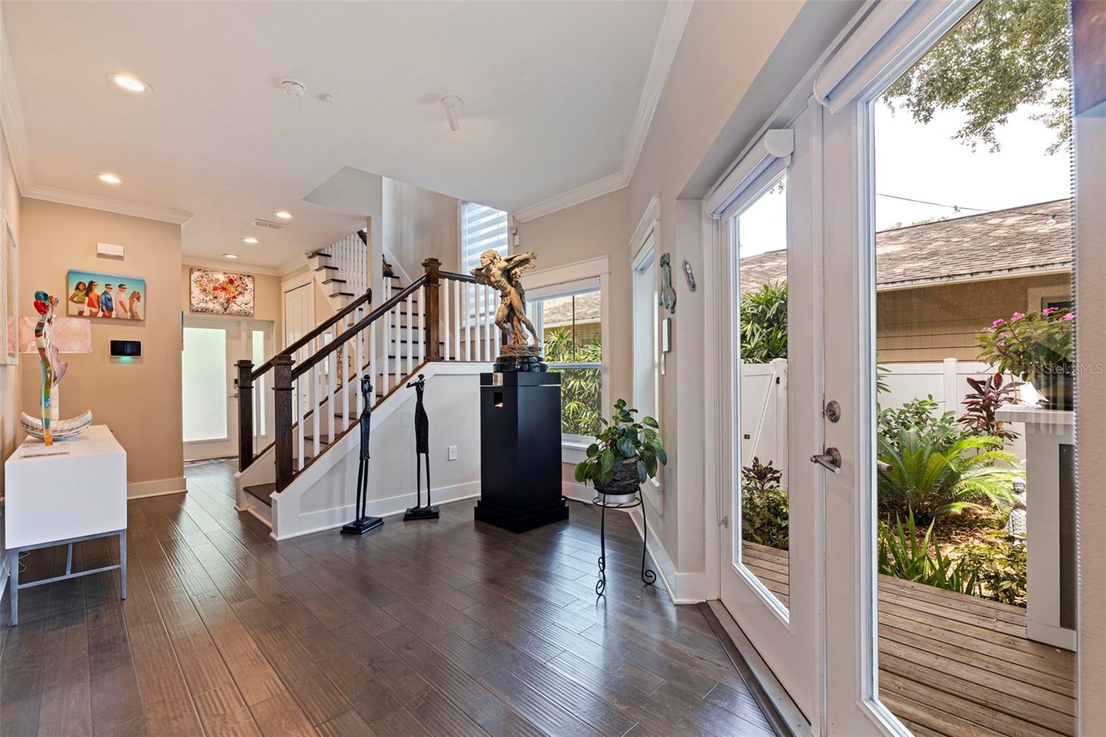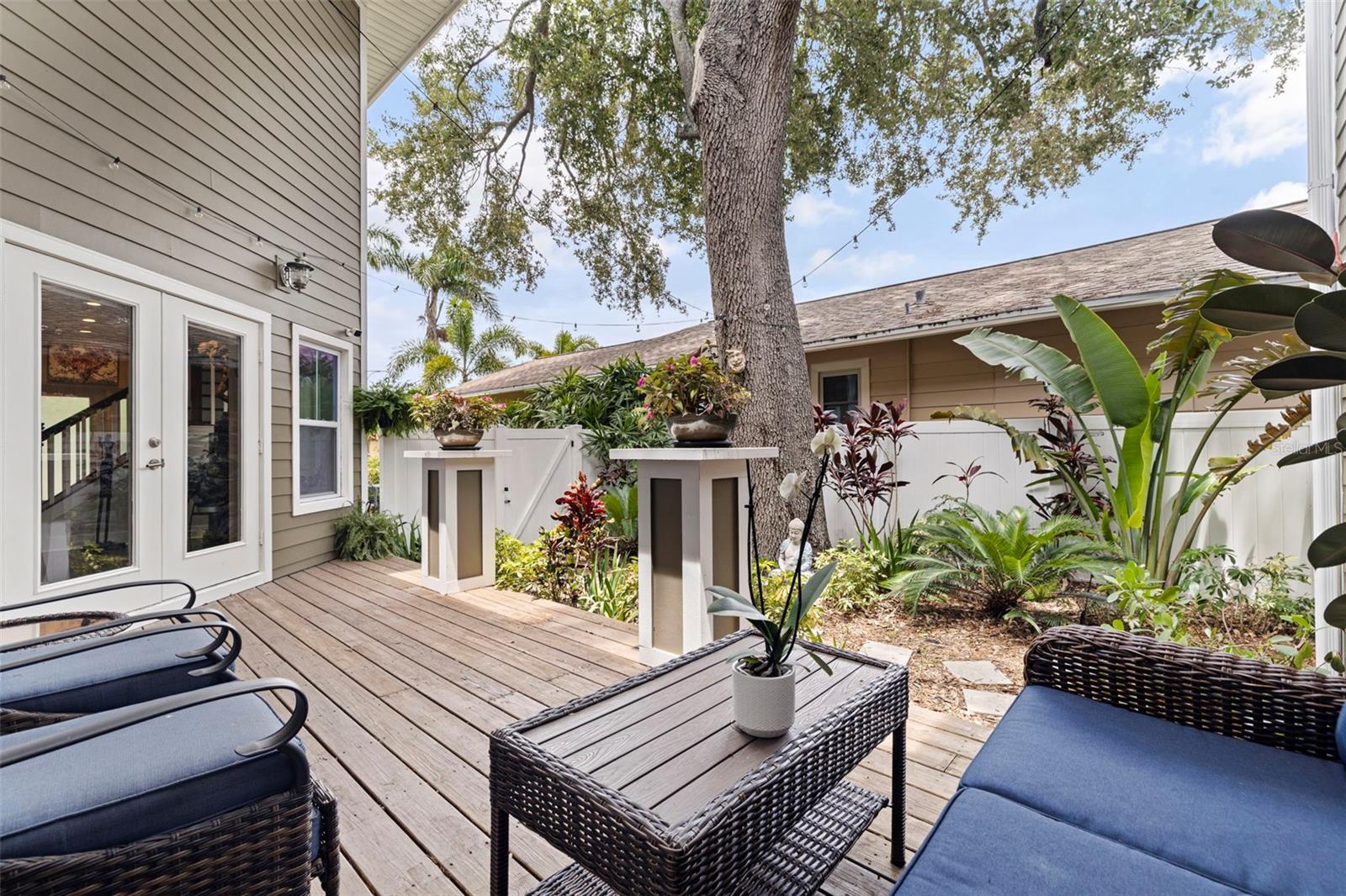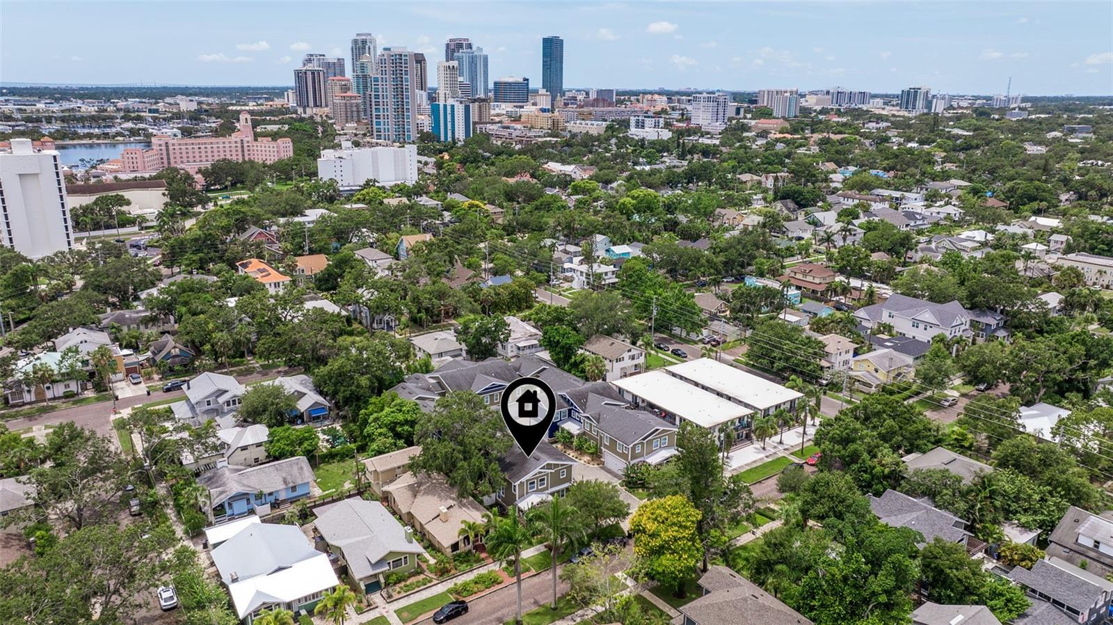 Located in the highly sought-after Historic Old Northeast neighborhood in a NON-FLOOD ZONE this impeccably designed 2-bedroom and den/bonus room, 2.5-bath townhome, built in 2017, offers the perfect blend of classic charm and modern convenience. With 2,096 sq ft of thoughtfully designed space, this two-story masonry block construction townhome is positioned at the front of a boutique 8-unit community, offering a single-family home feel with a large front porch featuring a charming swing and a private, cozy backyard ideal for outdoor entertaining or grilling. Just a 10-minute walk and six blocks from vibrant downtown, this home is in the perfect location. The open-concept first floor is designed for both everyday living and entertaining, featuring a spacious dining room and a beautifully appointed kitchen with custom soft-close solid wood cabinetry, quartz countertops, a stylish backsplash, and stainless steel appliances with natural gas range. The living room effortlessly transitions into the kitchen and overlooks French doors that lead to the private backyard. An oversized 2-car garage is seamlessly integrated into the home, offering easy access. Completing this level is a well-designed half-bath. Upstairs, you’ll find a spacious family room, a private laundry room, and a generously sized guest bedroom with an en-suite bathroom. The primary bedroom is a true retreat, complete with a large walk-in closet and a spa-like en-suite bathroom featuring an oversized frameless glass shower and premium fixtures. This home is loaded with thoughtful upgrades, including a new HVAC system (2024), wood flooring throughout, crown molding, custom blinds, hurricane-impact windows and doors, built-in closet systems, a built-in Murphy bed, ceiling fans in every room, and lush landscaping in the backyard. The entire home is equipped with a whole-house water filtration system, ensuring the utmost comfort and convenience. Located just moments from the vibrant downtown area, with its eclectic shops, acclaimed restaurants, and picturesque Tampa Bay waterfront, this move-in-ready townhome offers the ultimate in comfort, style, and location. Experience Florida living at its finest—schedule your private showing today!