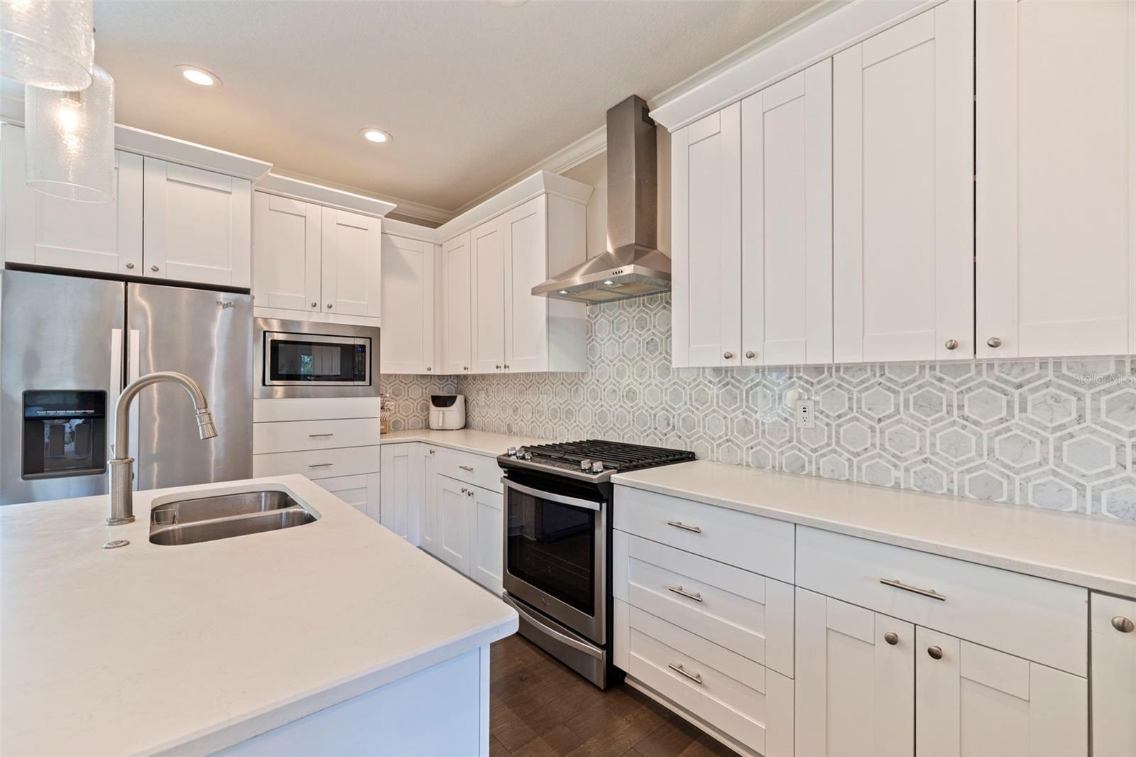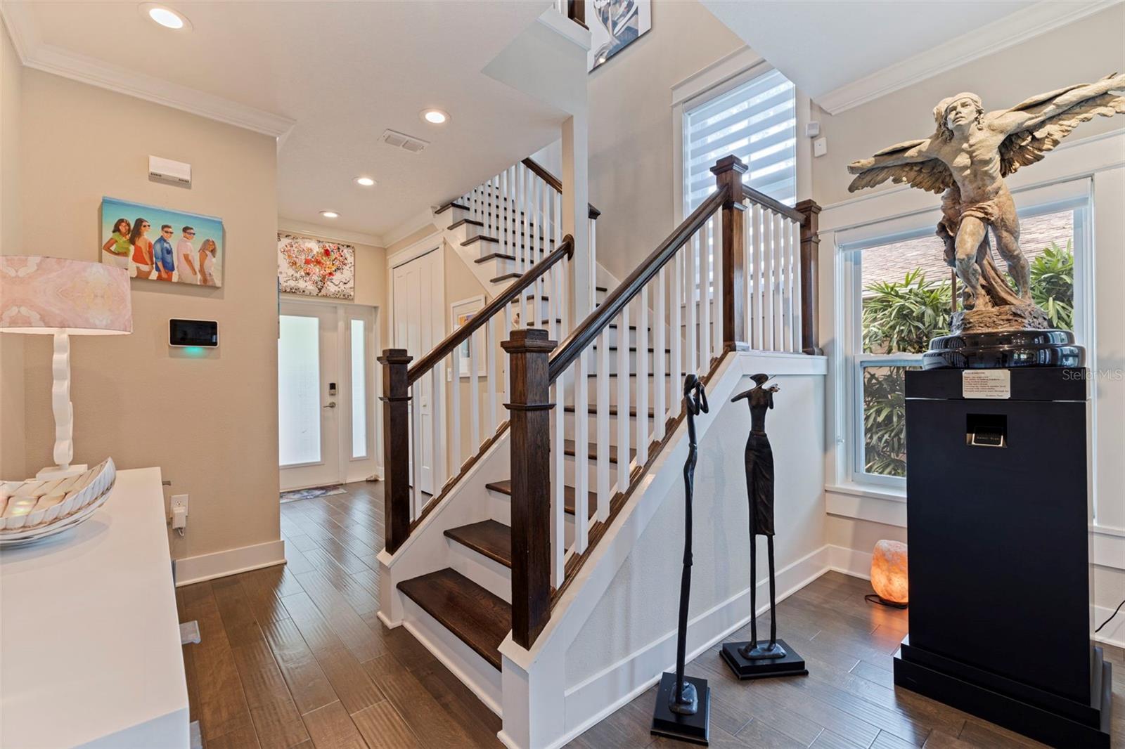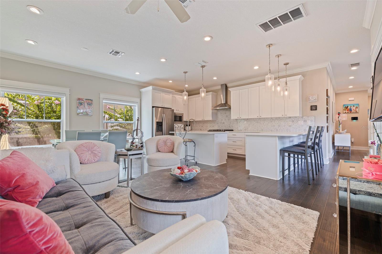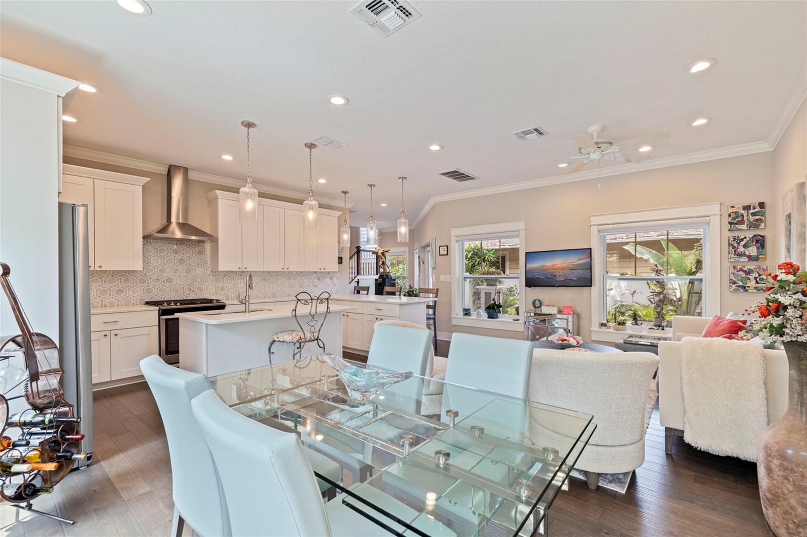 Located in the highly sought-after Historic Old Northeast neighborhood in a NON-FLOOD ZONE this impeccably designed 2-bedroom and den/bonus room, 2.5-bath townhome, built in 2017, offers the perfect blend of classic charm and modern convenience. With 2,096 sq ft of thoughtfully designed space, this two-story masonry block construction townhome is positioned at the front of a boutique 8-unit community, offering a single-family home feel with a large front porch featuring a charming swing and a private, cozy backyard ideal for outdoor entertaining or grilling. Just a 10-minute walk and six blocks from vibrant downtown, this home is in the perfect location. The open-concept first floor is designed for both everyday living and entertaining, featuring a spacious dining room and a beautifully appointed kitchen with custom soft-close solid wood cabinetry, quartz countertops, a stylish backsplash, and stainless steel appliances with natural gas range. The living room effortlessly transitions into the kitchen and overlooks French doors that lead to the private backyard. An oversized 2-car garage is seamlessly integrated into the home, offering easy access. Completing this level is a well-designed half-bath. Upstairs, you’ll find a spacious family room, a private laundry room, and a generously sized guest bedroom with an en-suite bathroom. The primary bedroom is a true retreat, complete with a large walk-in closet and a spa-like en-suite bathroom featuring an oversized frameless glass shower and premium fixtures. This home is loaded with thoughtful upgrades, including a new HVAC system (2024), wood flooring throughout, crown molding, custom blinds, hurricane-impact windows and doors, built-in closet systems, a built-in Murphy bed, ceiling fans in every room, and lush landscaping in the backyard. The entire home is equipped with a whole-house water filtration system, ensuring the utmost comfort and convenience. Located just moments from the vibrant downtown area, with its eclectic shops, acclaimed restaurants, and picturesque Tampa Bay waterfront, this move-in-ready townhome offers the ultimate in comfort, style, and location. Experience Florida living at its finest—schedule your private showing today!