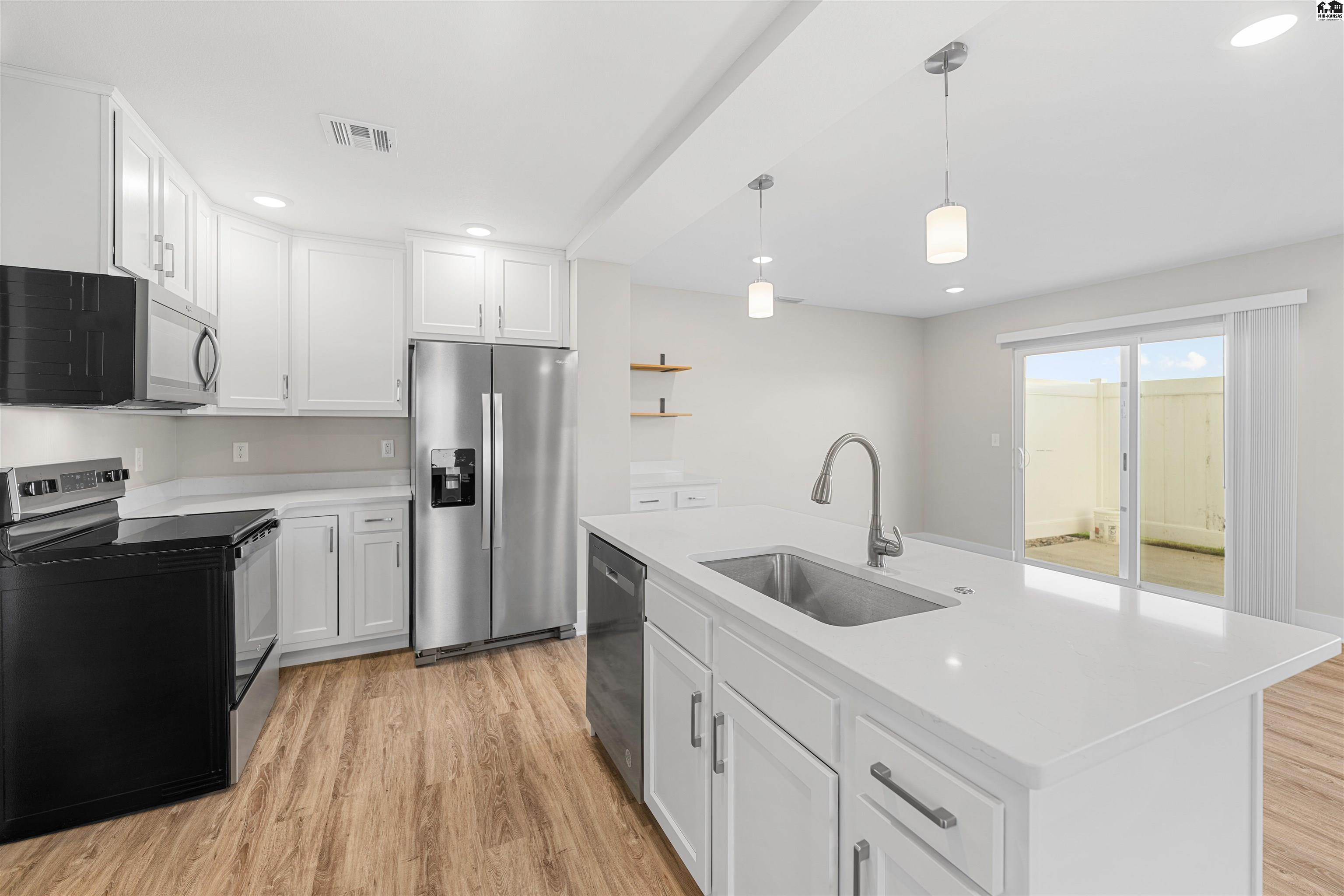 Welcome to AeroPlains, Salina's newest neighborhood! These townhomes were designed to offer the highest levels of efficiency and quality at an affordable price. The great room features vaulted ceilings and an open floor plan. Fabulous kitchen with stainless steel appliances and ample counter space. Enjoy a fireplace with this model. Room for bar stools as well as a kitchen table. All 3 bedrooms are on the 2nd floor. Master bedroom has an en-suite bathroom with zero entry shower and double vanities. 2 more bedrooms with an additional full bath upstairs. Main floor laundry with additional storage and hanging racks and another full bathroom on the main floor. 2 car garage with tornado shelter is a must in Kansas! Enjoy Hardie board exterior siding and Heritage shingles. Double pane vinyl windows and high efficiency HVAC. R49 insulation in the roof and R15 insulation in the walls. Each home comes with a full yard (sod), sprinkler, and landscaping. $0 in special assessment taxes! Exceeding your expectations and bringing you the best buy in Salina area real estate!