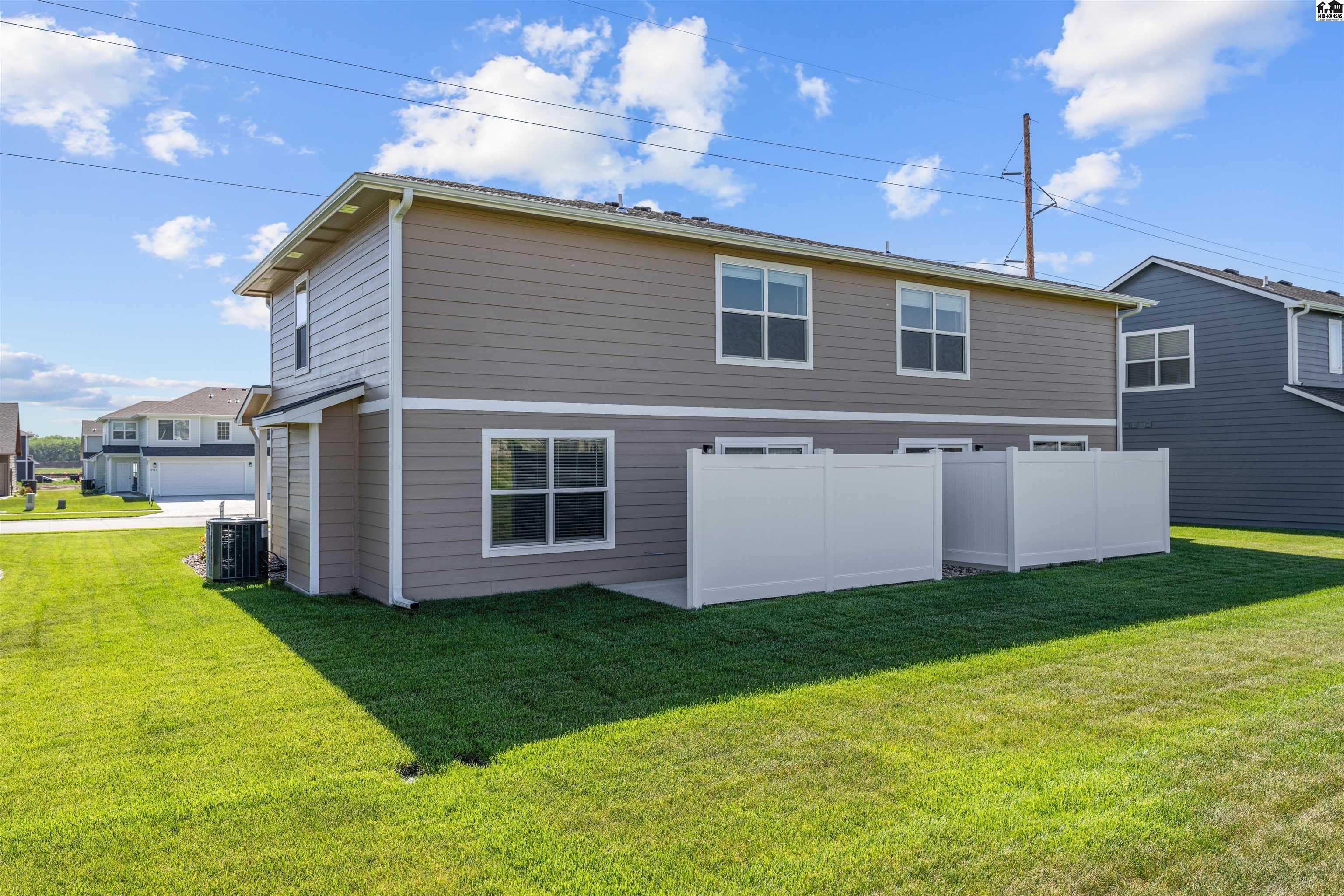 Welcome to AeroPlains, Salina's newest neighborhood! These townhomes were designed to offer the highest levels of efficiency and quality at an affordable price. The great room features vaulted ceilings and an open floor plan. Fabulous kitchen with stainless steel appliances and ample counter space. Enjoy a fireplace with this model. Room for bar stools as well as a kitchen table. All 3 bedrooms are on the 2nd floor. Master bedroom has an en-suite bathroom with zero entry shower and double vanities. 2 more bedrooms with an additional full bath upstairs. Main floor laundry with additional storage and hanging racks and another full bathroom on the main floor. 2 car garage with tornado shelter is a must in Kansas! Enjoy Hardie board exterior siding and Heritage shingles. Double pane vinyl windows and high efficiency HVAC. R49 insulation in the roof and R15 insulation in the walls. Each home comes with a full yard (sod), sprinkler, and landscaping. $0 in special assessment taxes! Exceeding your expectations and bringing you the best buy in Salina area real estate!