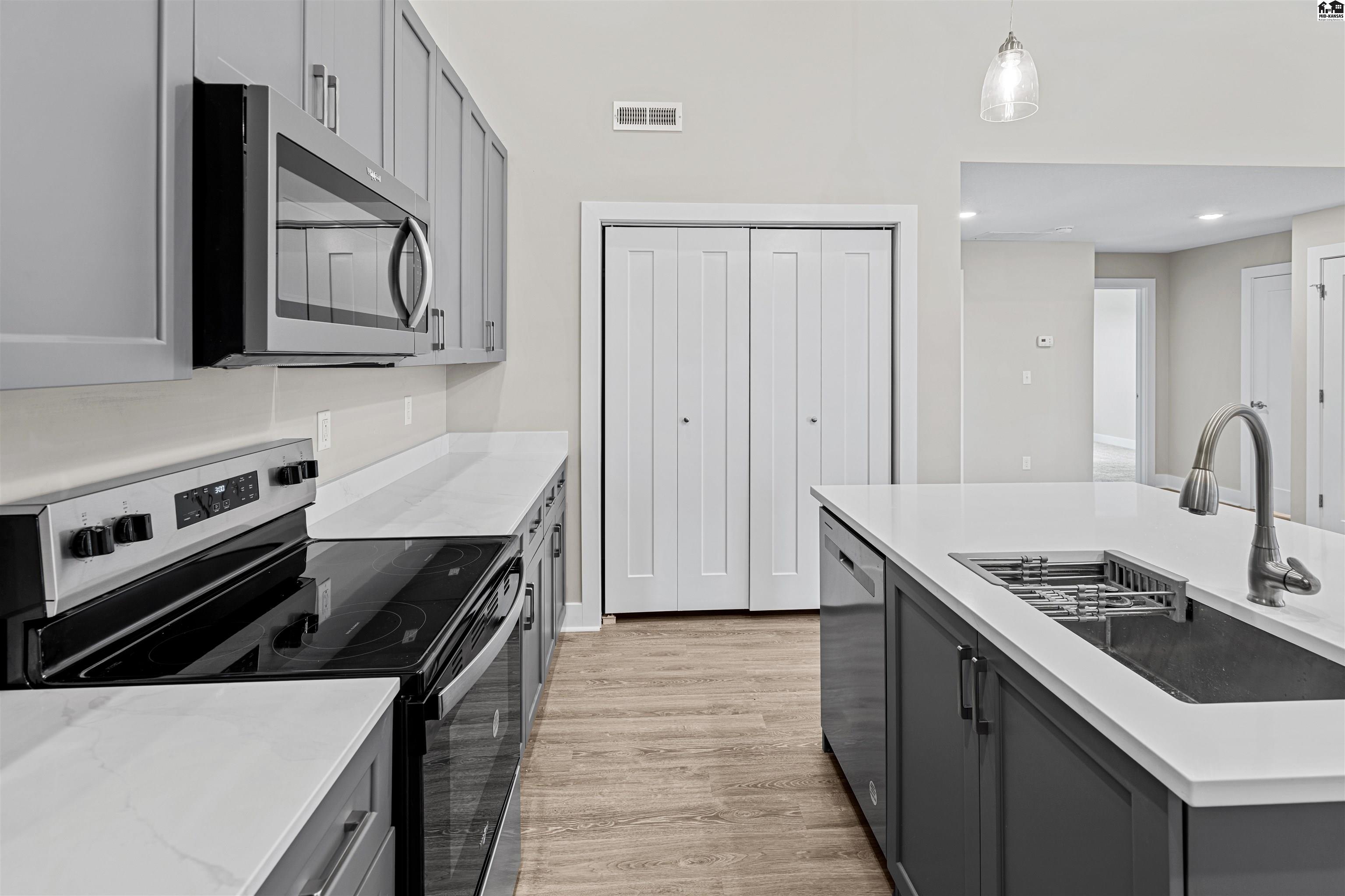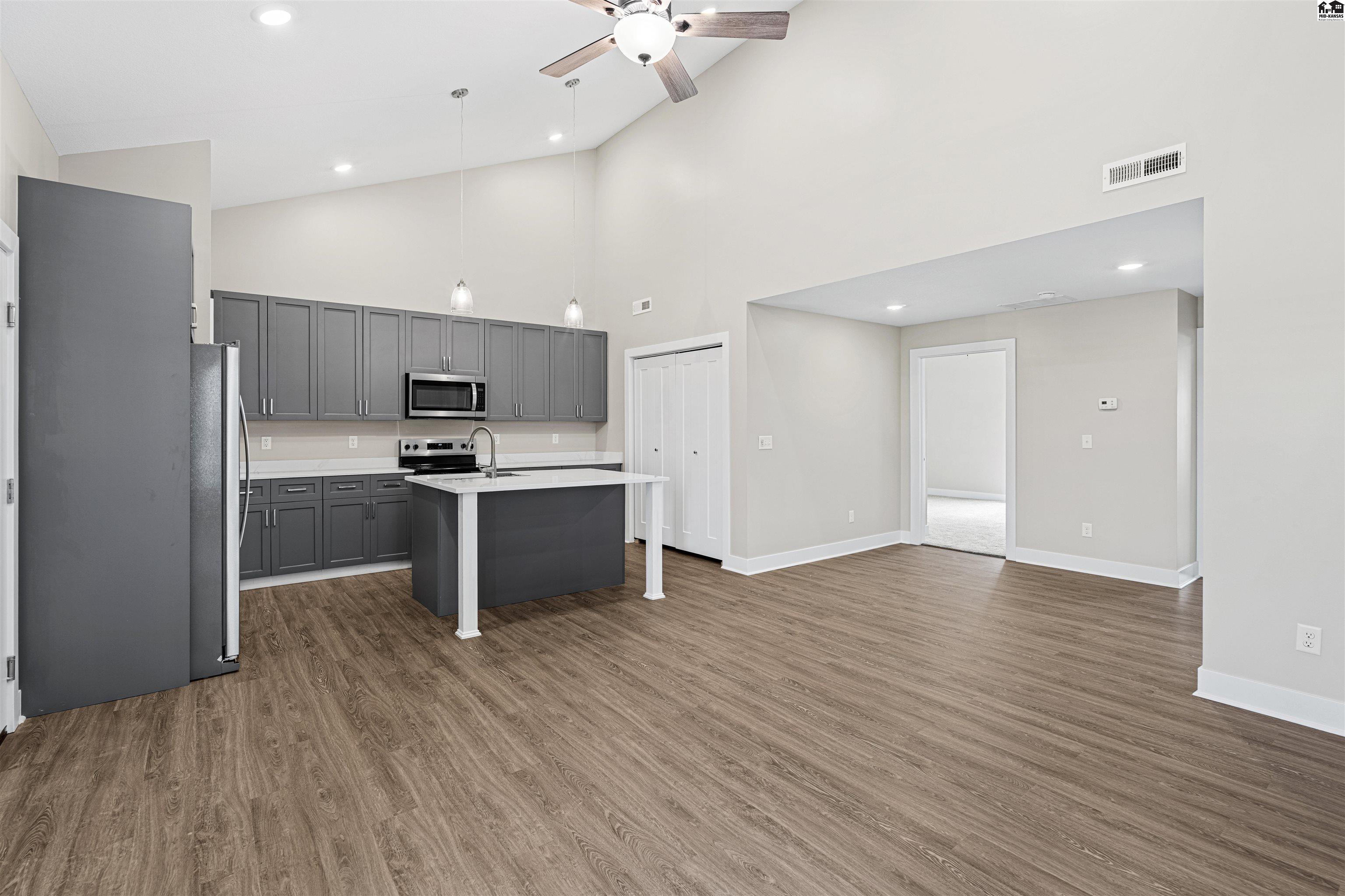 Brand New Townhomes! Amazing floor plan and design! Enjoy main floor living with zero entry and an open floor plan. Vaulted ceilings in the great room - open into the kitchen. Breakfast bar with kitchen island, pantry space, and stainless-steel appliances in your kitchen. Main floor laundry with convenient storage. Master suite with zero-entry shower on 1st floor, and 2nd bedroom that is perfect for family, guests or office space. Luxury tile plank flooring throughout living space and carpet in bedrooms. This floor plan features a loft space which has many possible uses. A 2nd generous bedroom upstairs with walk-in closet and a full bathroom for another master option. Sod, sprinkler and landscaping included. Storm shelters in every home. This is the 3-bedroom home you have been waiting for! Fabulous!