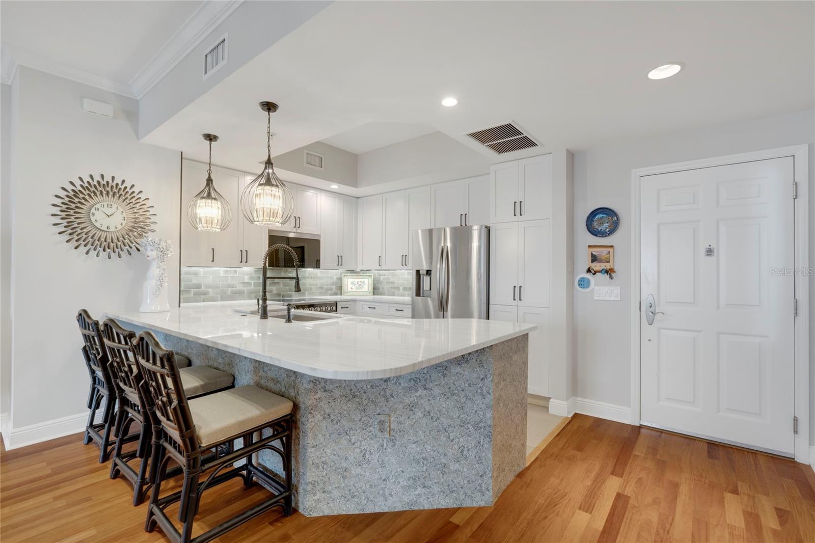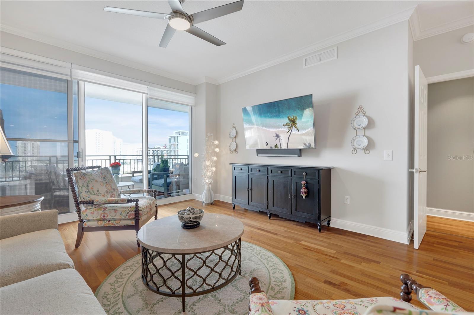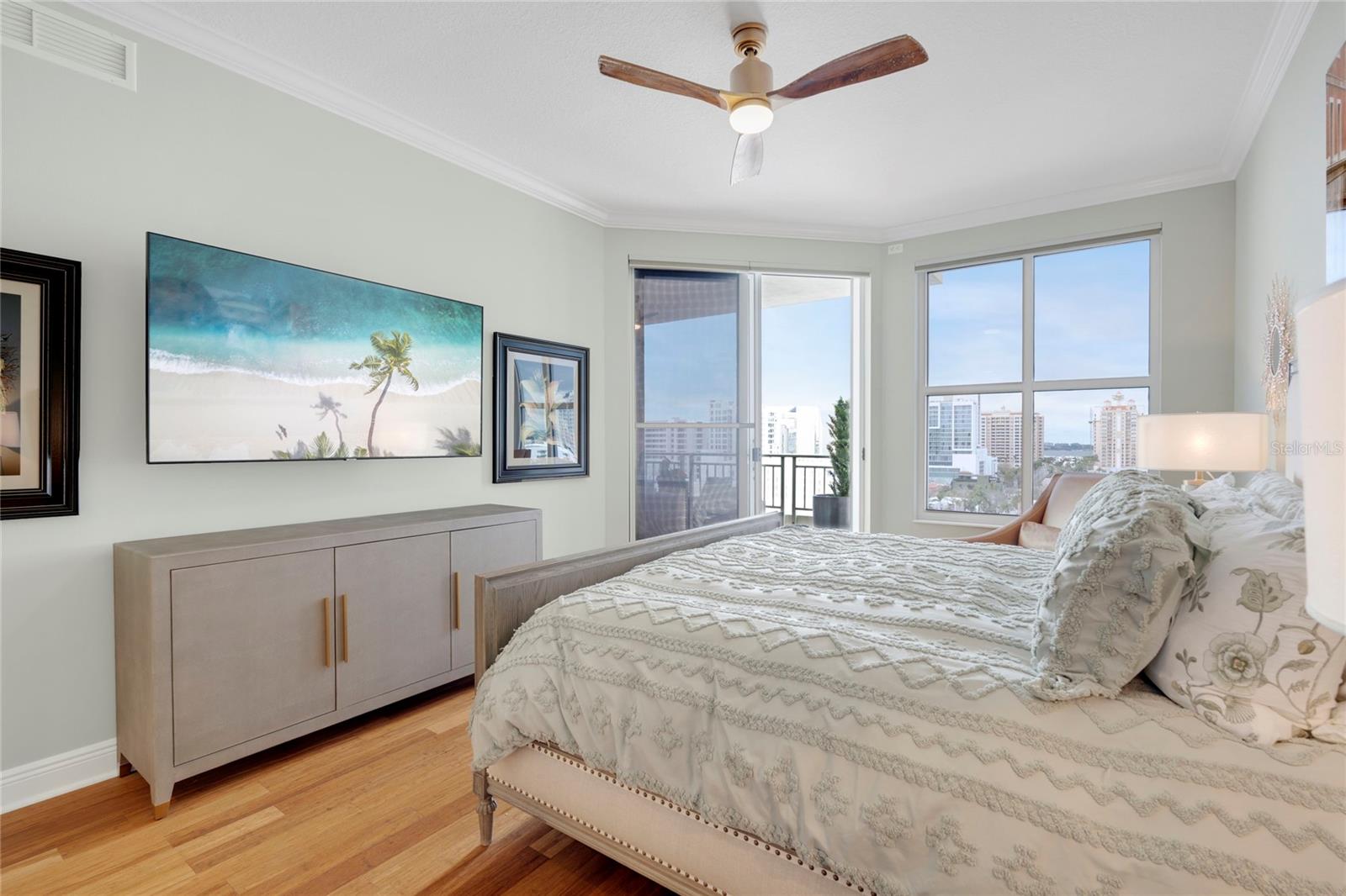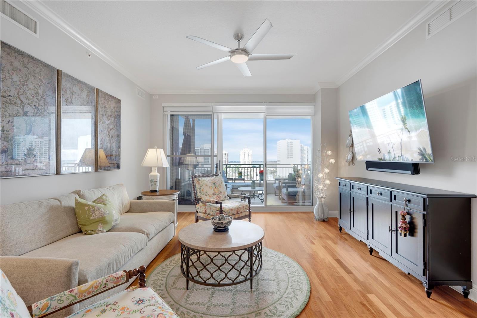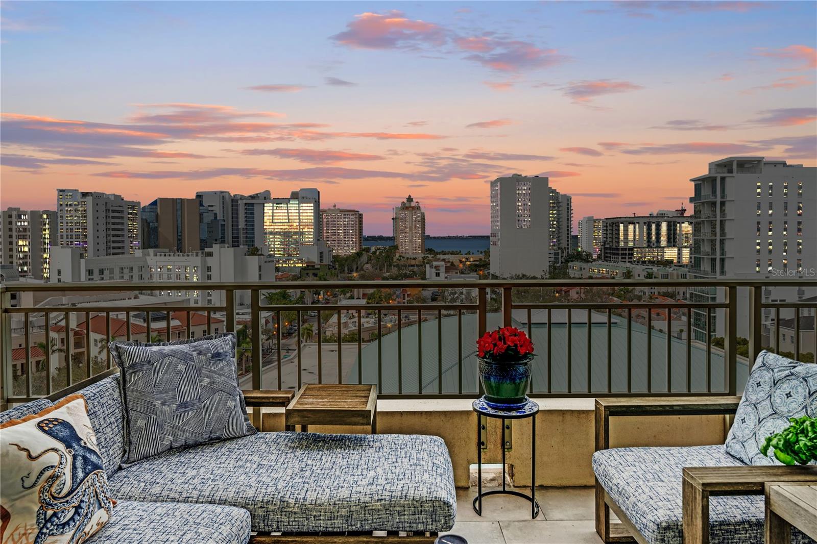 OVER 50K IN UPGRADES! Perched on the 9th floor of One Hundred Central in the heart of downtown Sarasota, this exquisite residence offers a harmonious blend of sophistication and serenity. Bathed in natural light, the home showcases breathtaking water views and a stunning skyline that transforms with the rhythm of the day. A beautifully reimagined kitchen serves as the heart of the home, featuring an extended Quartzie countertop, a refined backsplash, enhanced under-cabinet lighting, and premium appliances, including a Fisher & Paykel double-drawer dishwasher, a sleek black induction range, and a Jenn-Air combination microwave. The spacious primary suite is a private retreat, adorned with a custom-designed closet and elegantly appointed electric blinds for effortless comfort. Every detail has been thoughtfully curated, from the fresh, contemporary palette to the seamless indoor-outdoor flow onto a private balcony that invites moments of quiet reflection amid tranquil water vistas. The office offers a Murphy Bed with closets. Residents of One Hundred Central enjoy an unparalleled lifestyle with resort-style amenities, including a heated pool with sweeping views, a state-of-the-art fitness center, a private theatre, a resident lounge, and an inviting community room. With secured entry, 24-hour concierge service, and two gated parking spaces, luxury and convenience are effortlessly intertwined. Steps from Sarasota’s finest shopping, dining, and cultural landmarks such as the Sarasota Opera House, The Rosemary District, and Florida Studio Theatre, this residence is a sanctuary of refinement in the heart of the city.