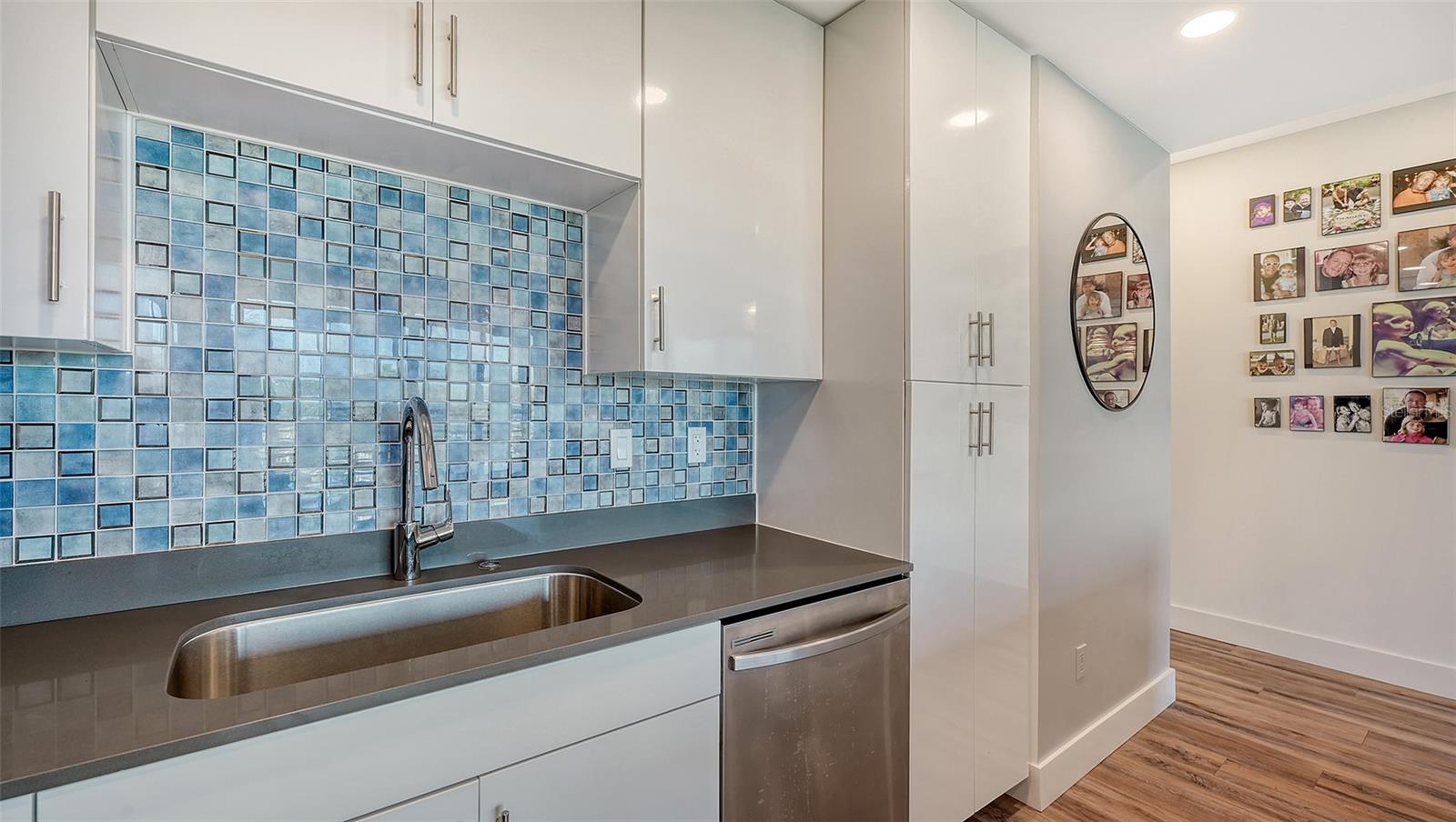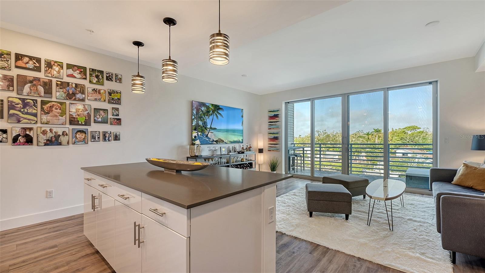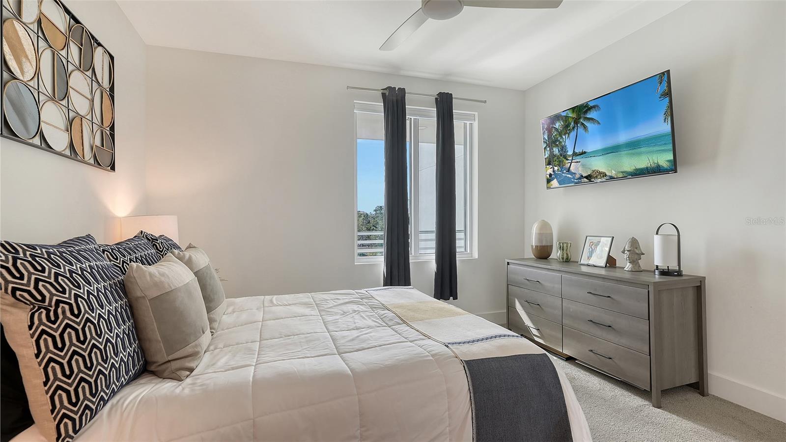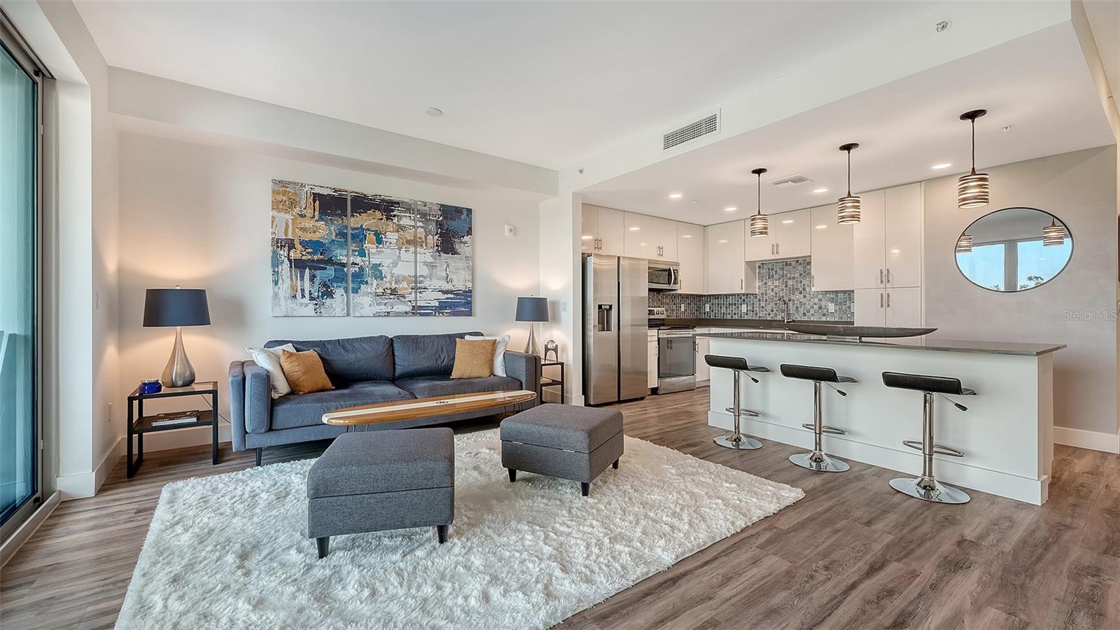 Under contract-accepting backup offers. Location, location, location with water views. The Strand of Sarasota on Whitacre Bayou built in 2022 has two buildings with 147 units. Our building 1709 has 108 units in it, four floors, with 27 units per floor, and faces the water and all units have direct bayou water views. This complex has its own marina with 42 slips. This unit does NOT have a boat slip. There is a community clubhouse (1705) with a fitness center, grilling area, firepit, swimming pool, dog park, kayak and canoe storage and launch to access the Bayou. There is also an on-site manager. This fourth floor unit is a one-bedroom, with one and one-half bathrooms with 896 square feet of living space and the largest open, but covered 119 square foot balcony. One can see the Bay from the balcony and all the living area has a bayou water view. This unit is being sold turnkey-furnished, and has quartz countertops and tile flooring throughout. The primary bedroom is carpet and faces the front of the building. The primary bathroom has a single-sink and only the upgraded, larger shower stall. This unit has a deeded and assigned under building parking space #4 (10 x 17) and a deeded under building 3 x 6 storage cage, just to the left of the parking space. There is more than enough guest and second-car parking all over the complex. Unit A408 is the second unit from the left on that floor of the eight other units (401 to 409). This complex rental restrictions are a seven-day minimum 52 weeks a year, if desired. Two pets, dog or cat are allowed with no weight limit. The monthly maintenance fees are less than $500 and this seller has paid the first half of the only assessment due, with the balance of $1,780 due 08/01 for the 2025 calendar year. This unit's monthly utility costs average $65 for water, sewer, trash and recycle and $50 for electricity. All the appliances and the HVAC system are only two years new. This is a must-see for a individual, or couple who want to be on the water close to Downtown Sarasota. If you as a new owner would like to rent the unit for income, the rental company quoted us $3,000 a month on an annual lease and $4,800 a month in high-season, January, February, and March.