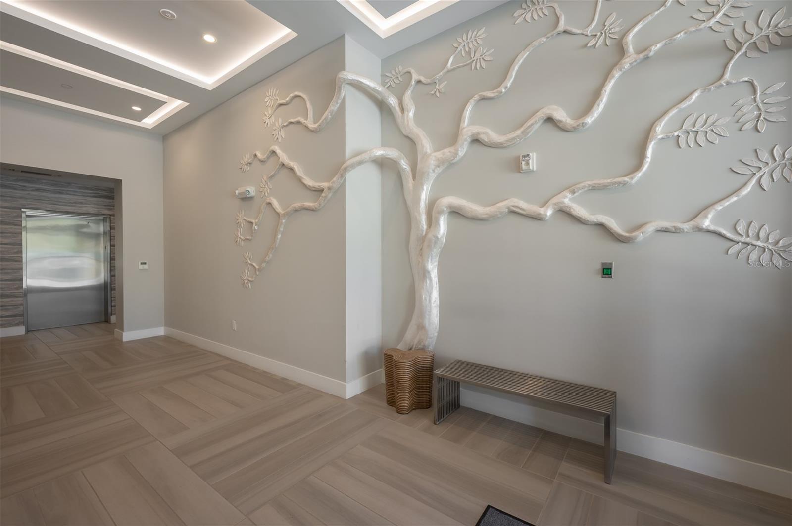 This desirable top-floor residence in the exclusive Orange Club community seamlessly blends modern design with everyday comfort. In a prime downtown location within a boutique building of only 15 residences, this sought-after Sunrise floor plan offers over 1,500 square feet of open and airy living space. The main living areas feature elegant wood-look porcelain tile flooring, complementing the home’s contemporary aesthetic. An open-concept layout enhances the flow of natural light, with floor-to-ceiling sliders leading to an expansive private balcony. Designed for relaxation and entertaining, the balcony includes an overhead fan, and a natural gas grill with ample room for outdoor dining and lounging. The chef-inspired kitchen is stylish and functional, featuring a natural gas cooktop, premium dark wood-grain cabinetry, stainless steel appliances, and a large island that provides additional workspace and seating. The adjacent dining area is open and spacious, seamlessly integrating with the kitchen and living area for effortless entertaining. The primary suite spans the width of the residence, offering a tranquil retreat with abundant natural light, a spa-inspired en-suite bath and a generous walk-in closet. The primary bath is thoughtfully designed with a glass-enclosed walk-in shower, an extra-long floating double vanity and built-in storage, all complemented by large-format porcelain tiles. One of the additional bedrooms serves as a dedicated study with a closet, making it easily adaptable as a guest space or private media den. Positioned for privacy, the additional bedrooms are on the opposite side of the home, separated from the primary suite by the main living areas. High-end features throughout include shades, premium fixtures and wood-look porcelain tile flooring in the main living spaces. This residence also includes a deeded, assigned covered parking space, climate-controlled ground-level storage and access to ample guest parking. Residents of Orange Club enjoy a heated pool and patio area, ideal for year-round relaxation. Furniture is available for purchase under a separate bill of sale. In the heart of Sarasota, near the historic Burns Court neighborhood, this exceptional residence offers the blend of urban convenience, privacy and tranquility, all within a short distance of downtown Sarasota and Sarasota Bay.