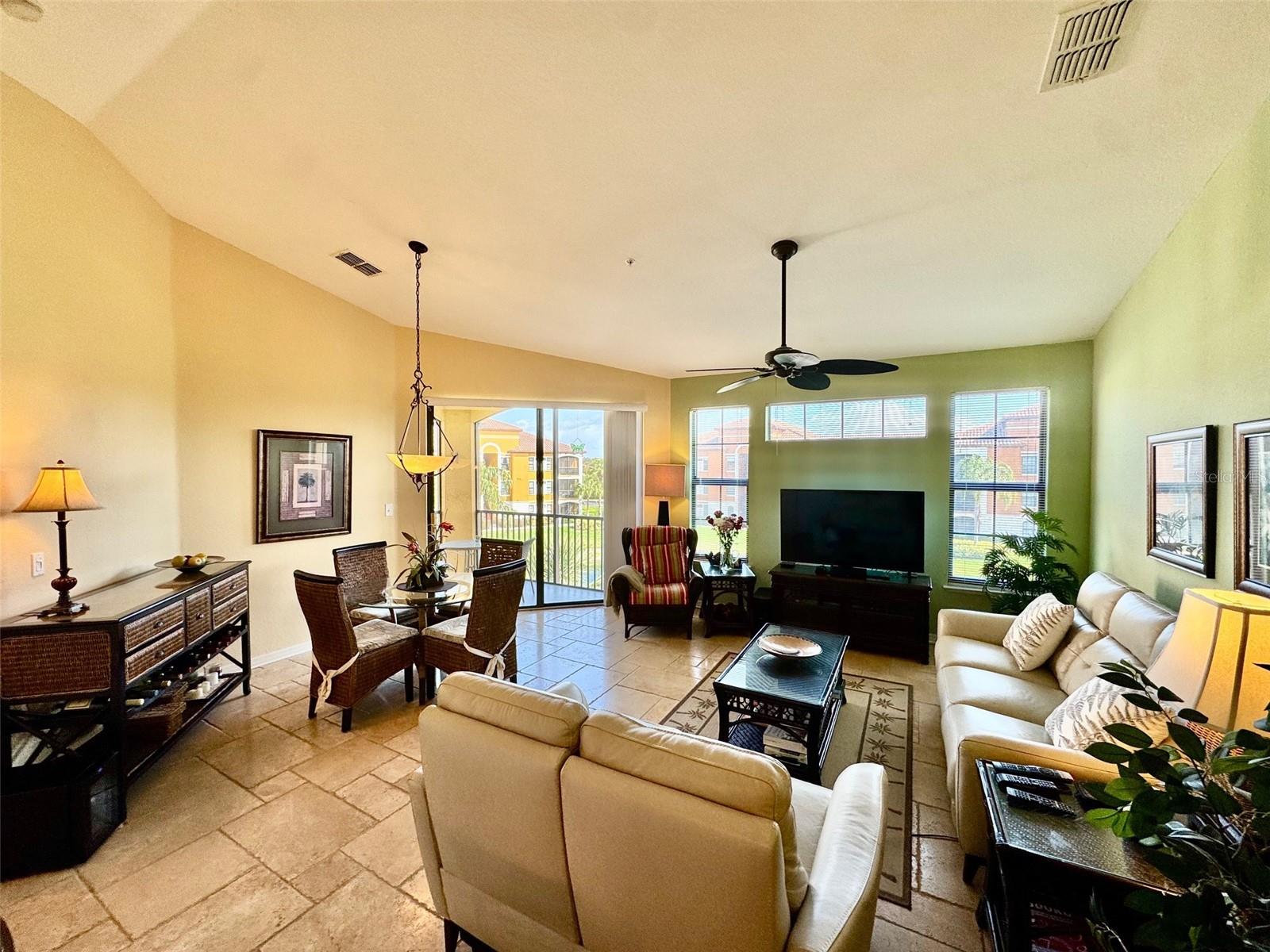 Highly desirable LAKE VIEW unit at the luxurious Serenata Condominiums! Great investment opportunity if you are not ready to retire. This third floor unit is tastefully decorated and being sold turnkey furnished. White cabinets, granite countertops, travertine flooring in the living/dining room and a beautiful walk-in shower make this unit stand out! This unit also comes with a carport. Spectacular split floor plan featuring main living area with 11-12 foot ceilings, built-in shelves, oversize hurricane resistant windows/sliders to private screened patio. Each bedroom has a large walk in closet with a great view. This unit includes a breakfast bar, furniture quality wood cabinets, nice appliances, laundry room and a storage closet on the lanai. Serenata is a maintenance free gated community featuring the best resort style pool in the area. The property features meticulously maintained mature landscaping, 24 hour fitness center, lighted tennis court, game room, library, wifi access in the clubhouse/pool area and valet trash service. Publix, CVS, Starbucks, Panera Bread and many other stores are nearby. The new UTC Mall & SRQ Airport are 5 minutes away. Downtown & St. Armands are only 10-15 minutes away!