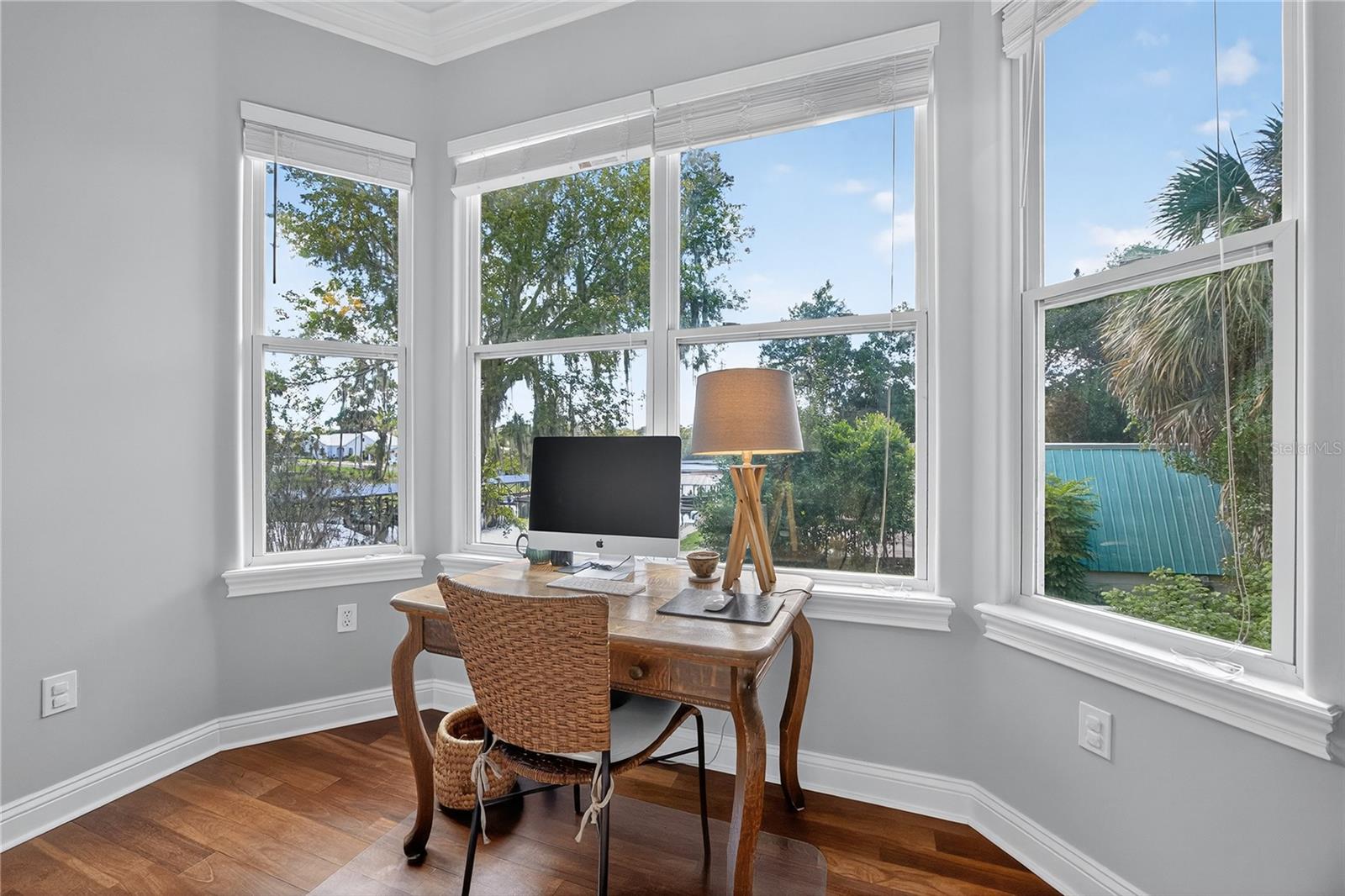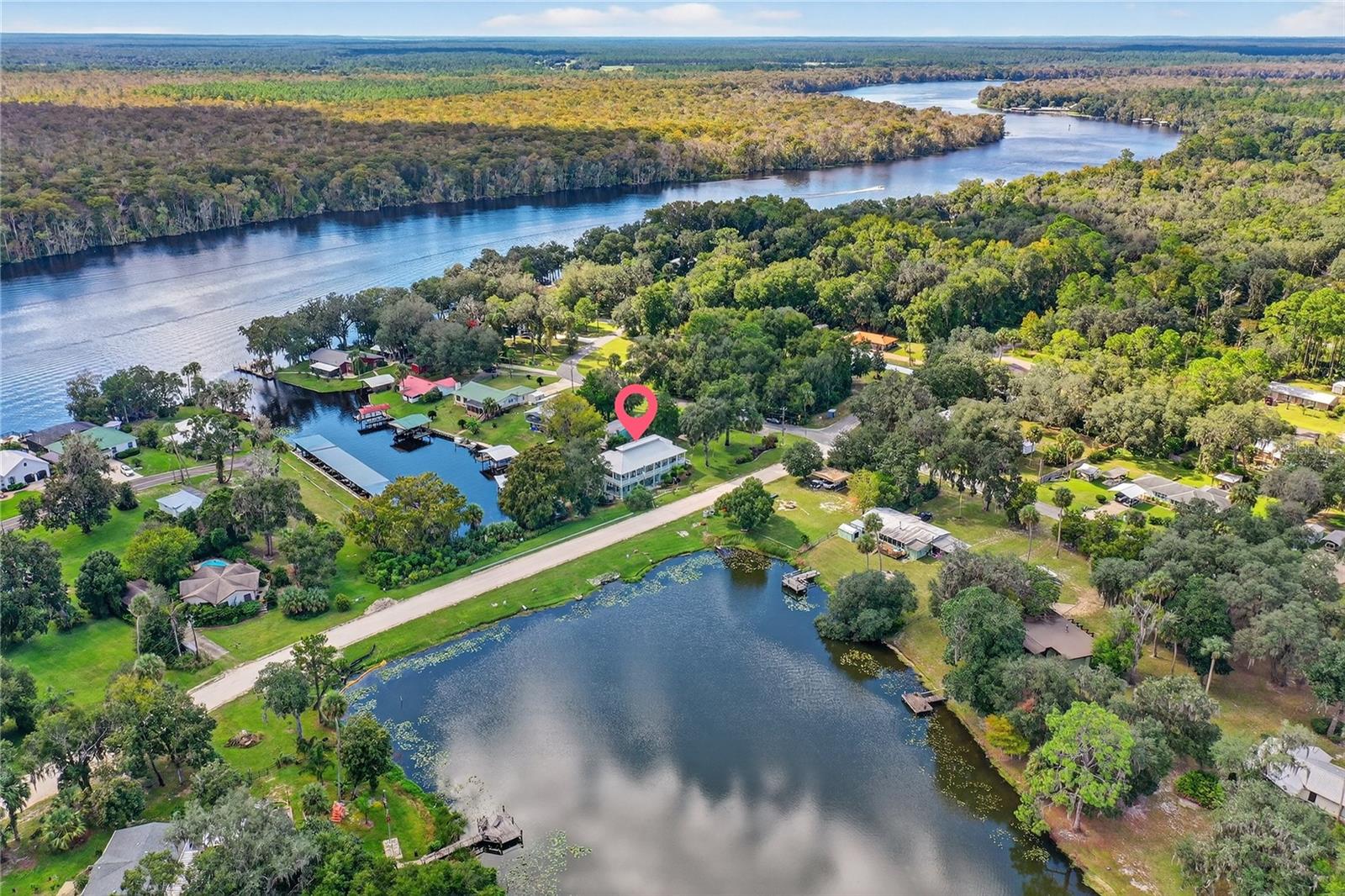 Outdoor living is equally captivating. The full wraparound porch frames spectacular views of Lake Saranac, the St. Johns River, and the canal, while the private dock with a 13,500-lb elevator boat lift offers direct water access for boating enthusiasts.