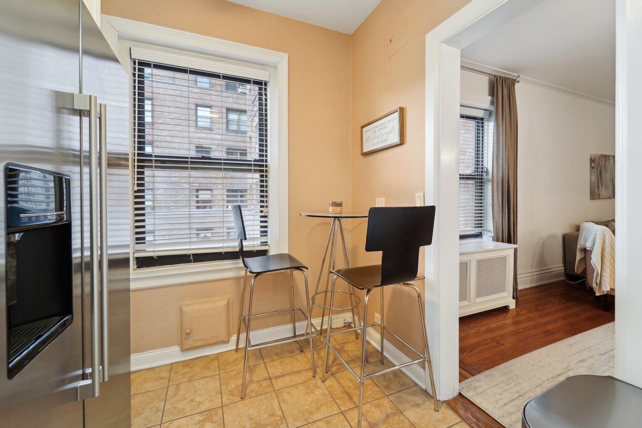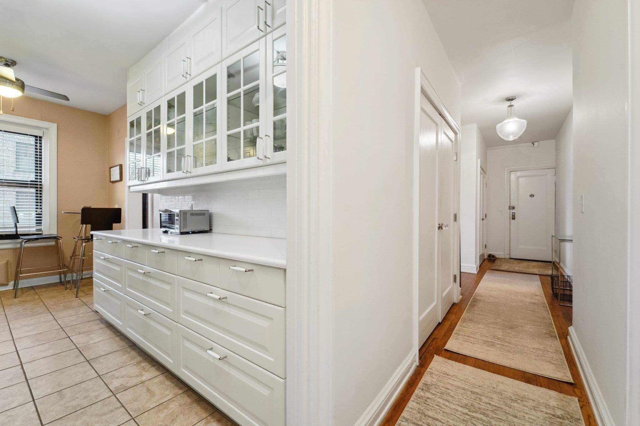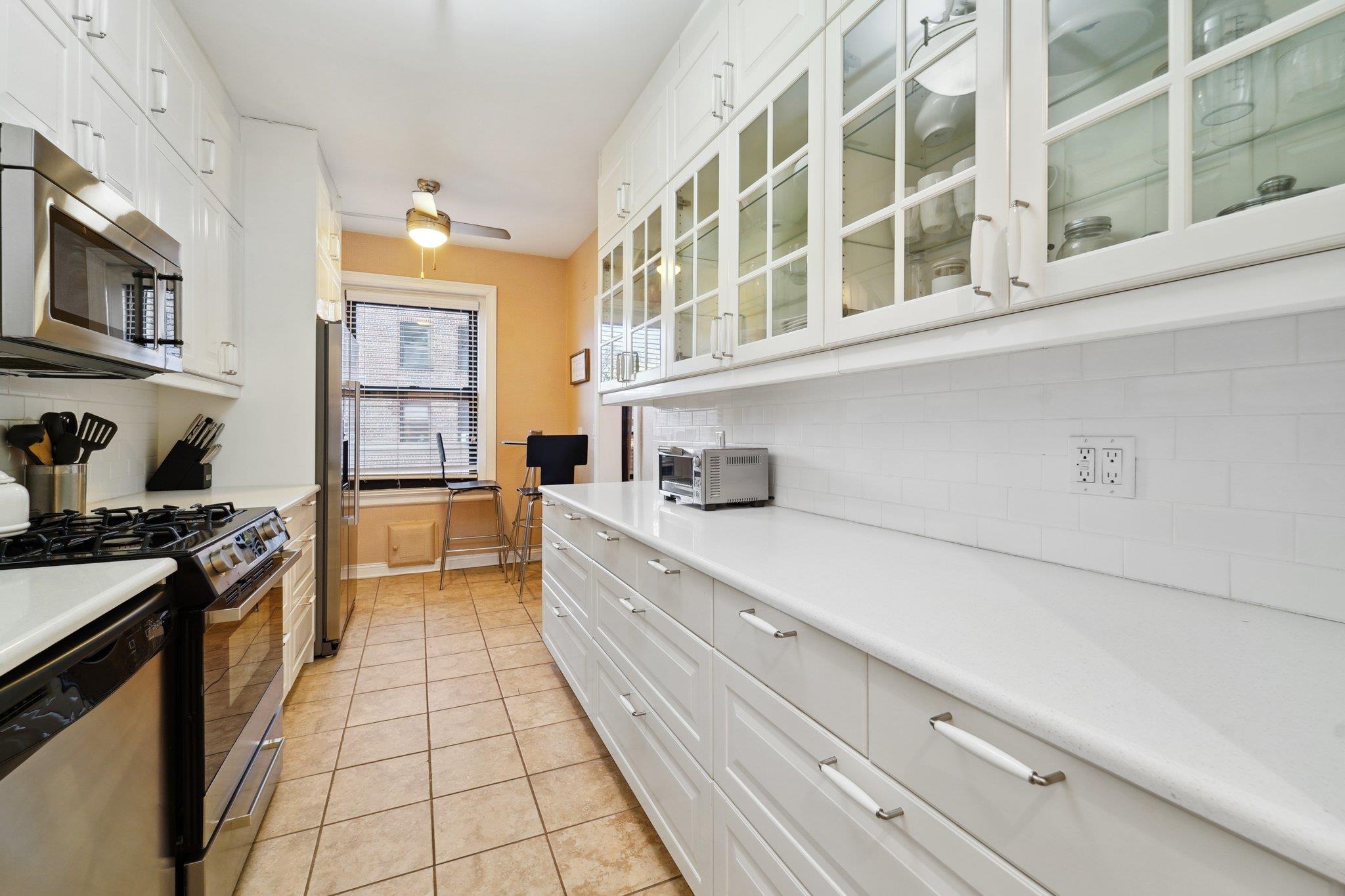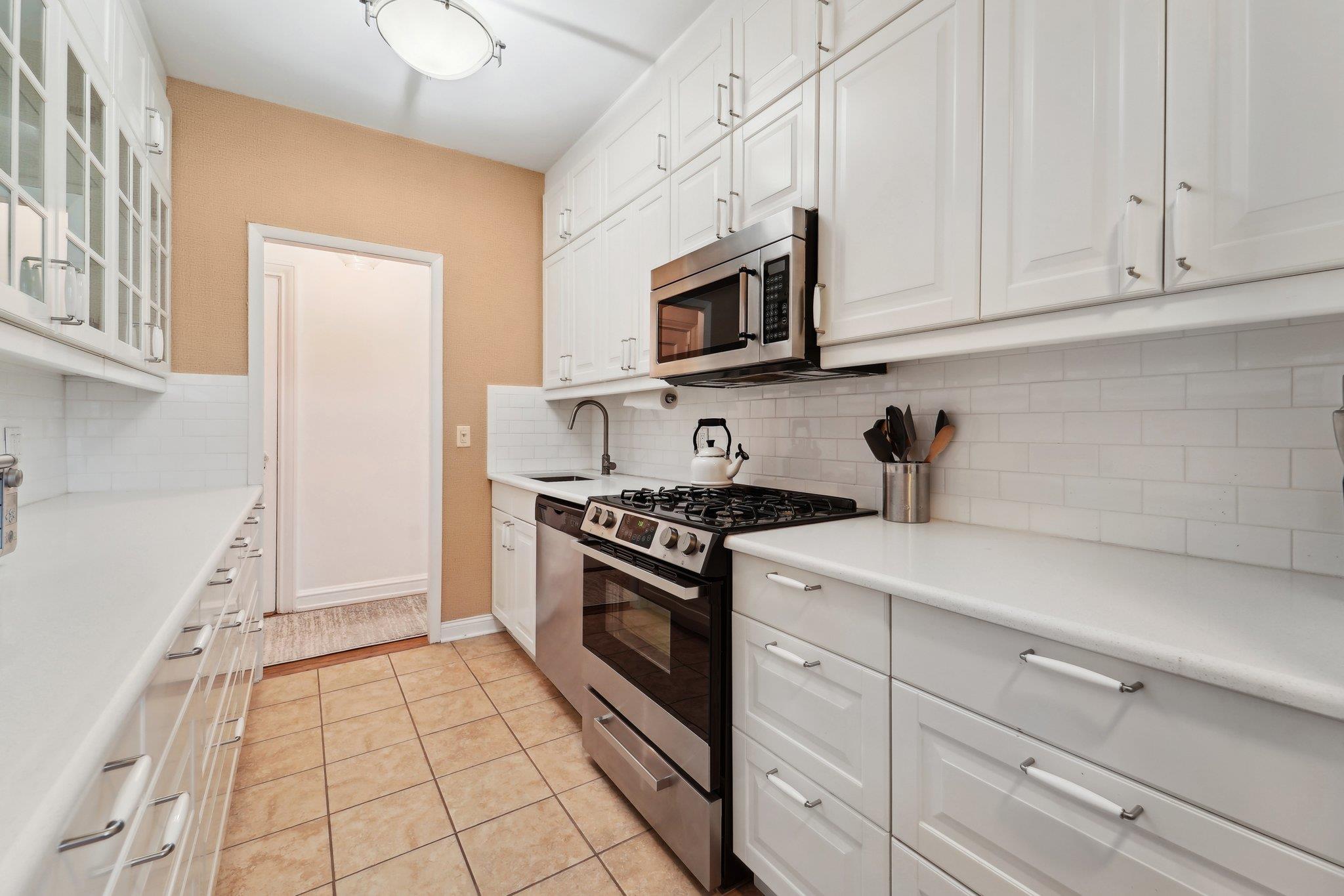 Welcome to Apartment 3J at 143 Garth Road in Scarsdale – a beautifully maintained, move-in-ready one-bedroom, one-bathroom co-op offering 850 square feet of bright and inviting living space. This spacious home features gleaming hardwood floors throughout, an updated eat-in kitchen with stone countertops, custom glass-and-wood cabinetry, and stainless steel appliances. The large living and dining area is filled with natural light, creating a warm and welcoming atmosphere. The generously sized bedroom offers ample space, and the home includes five closets, three of which are custom-designed, providing exceptional storage. The renovated bathroom features elegant marble flooring and modern finishes. Residents enjoy building amenities such as a laundry room, a private storage unit, and a beautifully landscaped terrace overlooking Garth Woods. The property is conveniently located just steps from the Metro-North station, offering a quick 30-minute commute to Manhattan, and is within close proximity to shops, dining, and the Bronx River Parkway and Trail. Residents are eligible for membership at Lake Isle Country Club, which offers golf, tennis, and swimming. On-street parking is available with a free permit from the Town of Eastchester. This pet-friendly building allows one dog with restrictions. Don’t miss the opportunity to experience comfort, convenience, and quality living at 143 Garth Road, Apartment 3J.