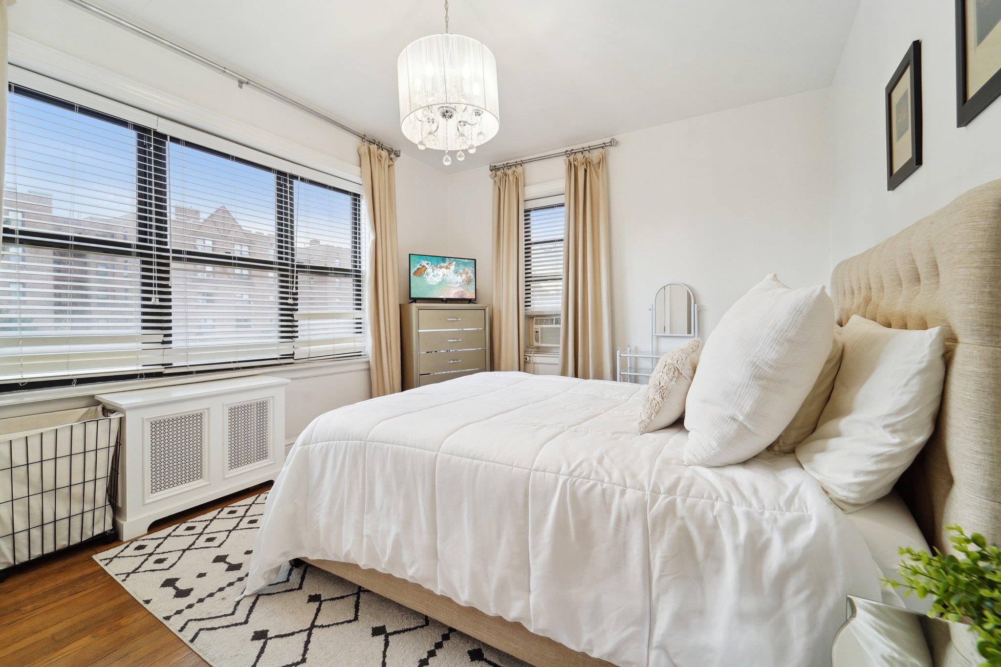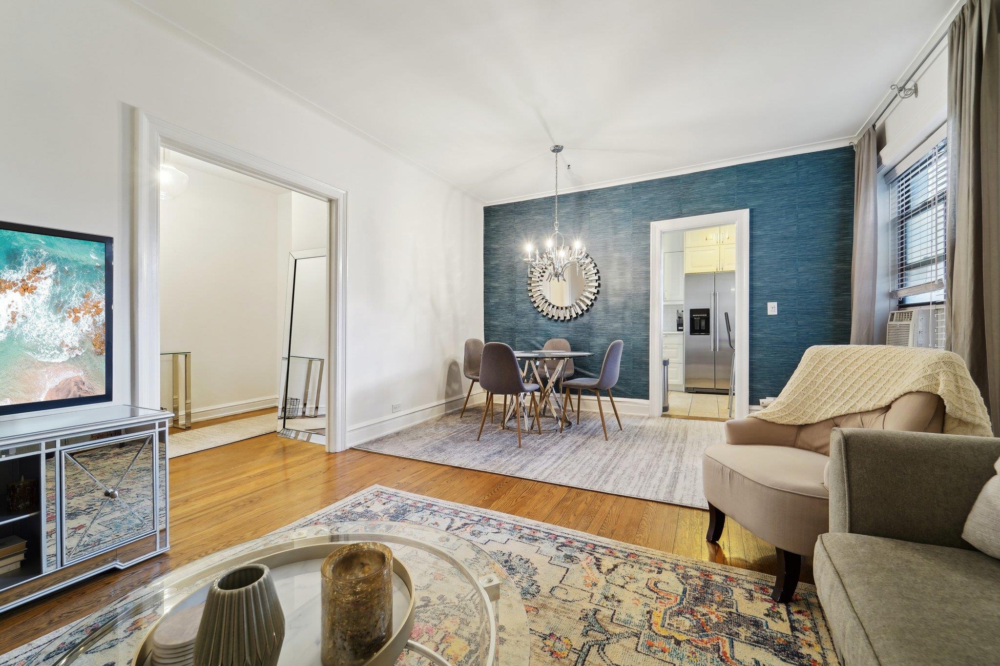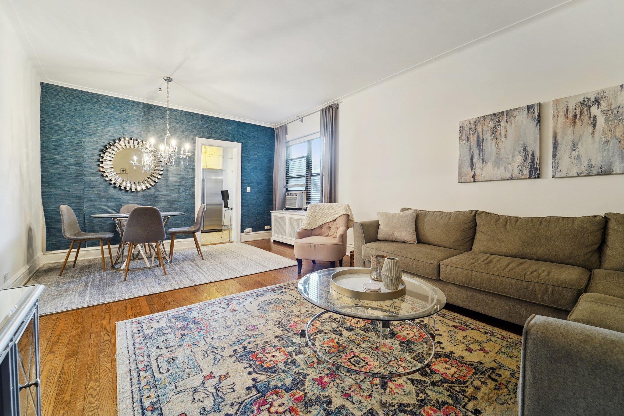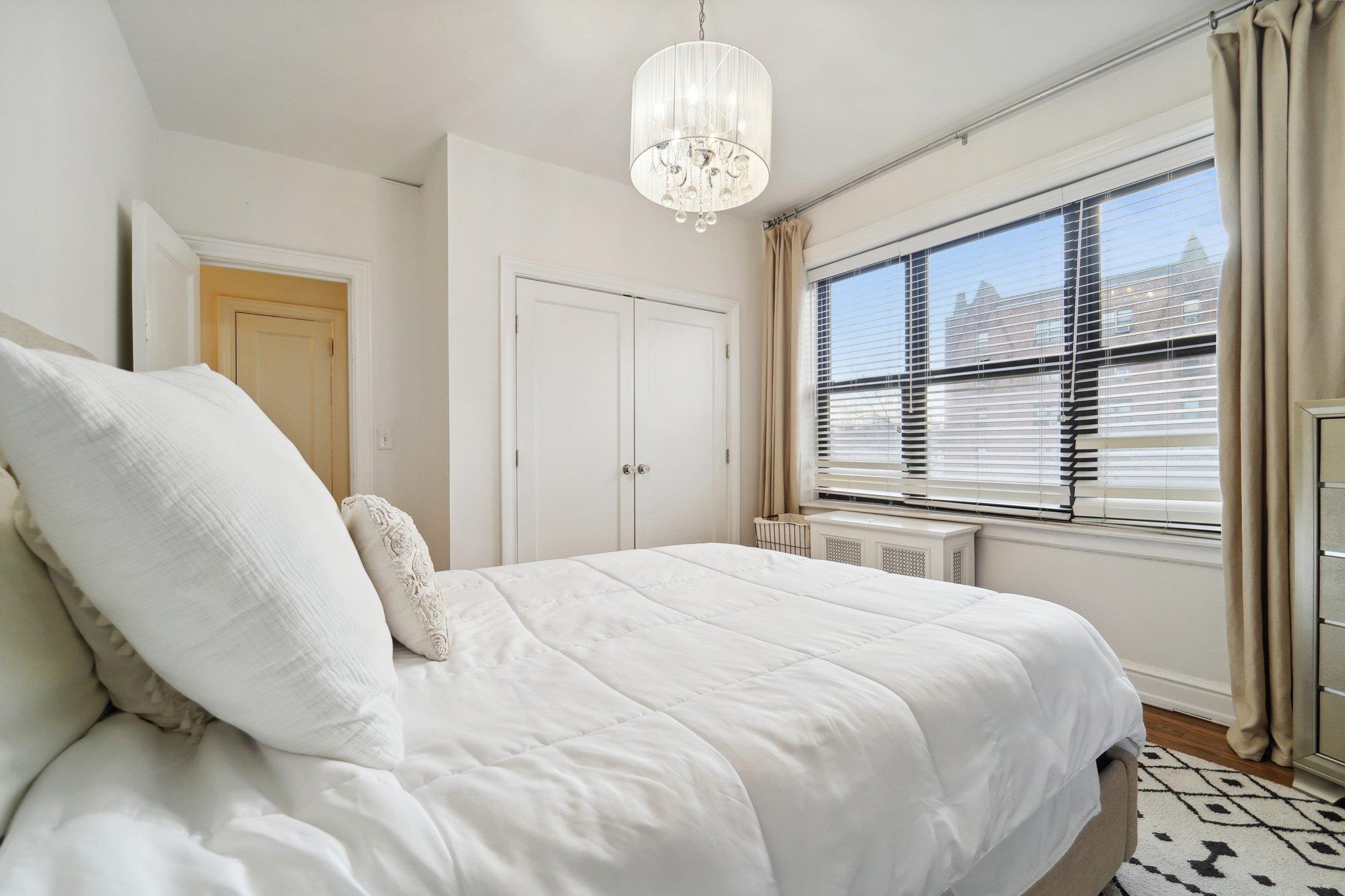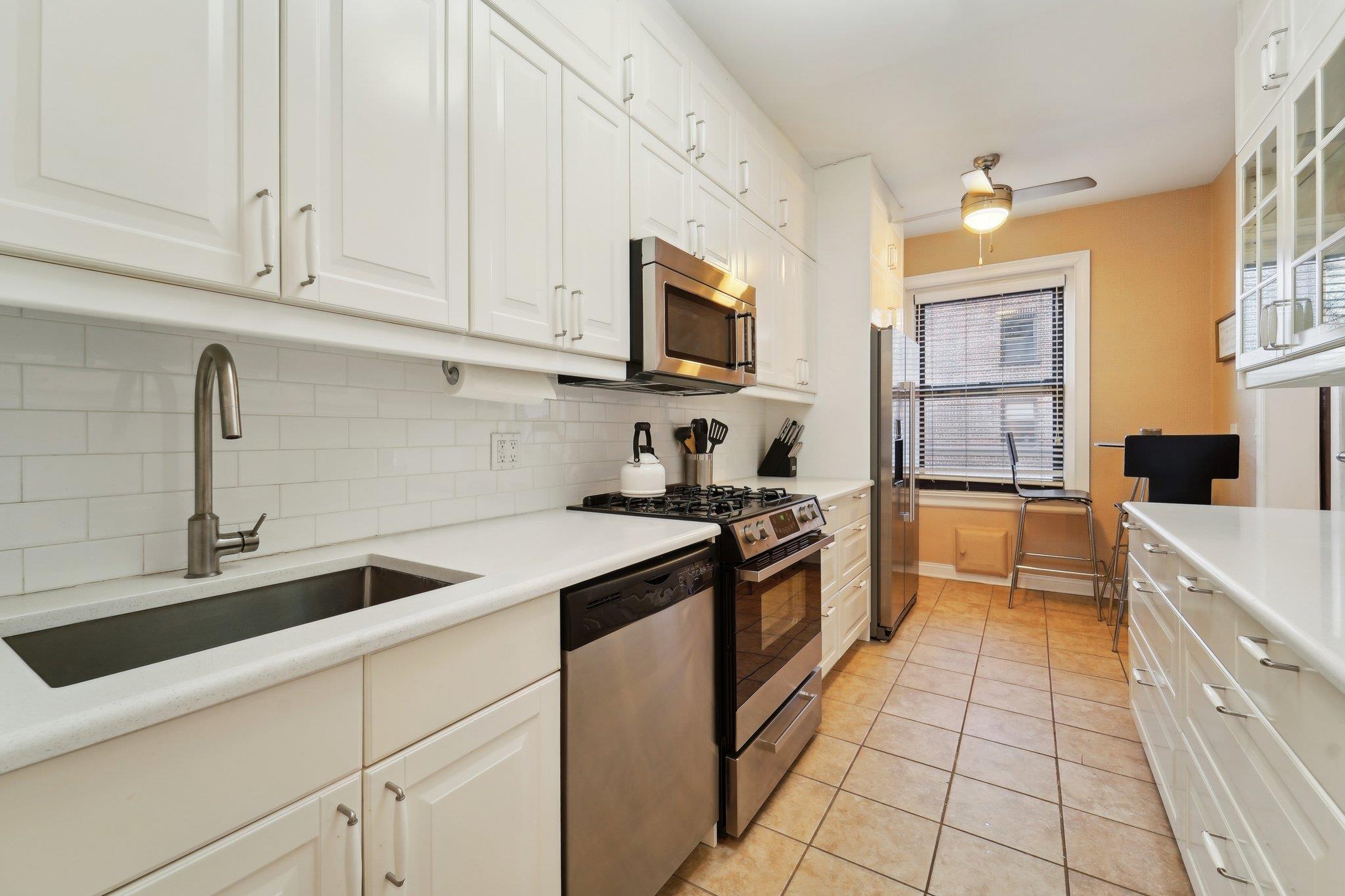 Welcome to Apartment 3J at 143 Garth Road in Scarsdale – a beautifully maintained, move-in-ready one-bedroom, one-bathroom co-op offering 850 square feet of bright and inviting living space. This spacious home features gleaming hardwood floors throughout, an updated eat-in kitchen with stone countertops, custom glass-and-wood cabinetry, and stainless steel appliances. The large living and dining area is filled with natural light, creating a warm and welcoming atmosphere. The generously sized bedroom offers ample space, and the home includes five closets, three of which are custom-designed, providing exceptional storage. The renovated bathroom features elegant marble flooring and modern finishes. Residents enjoy building amenities such as a laundry room, a private storage unit, and a beautifully landscaped terrace overlooking Garth Woods. The property is conveniently located just steps from the Metro-North station, offering a quick 30-minute commute to Manhattan, and is within close proximity to shops, dining, and the Bronx River Parkway and Trail. Residents are eligible for membership at Lake Isle Country Club, which offers golf, tennis, and swimming. On-street parking is available with a free permit from the Town of Eastchester. This pet-friendly building allows one dog with restrictions. Don’t miss the opportunity to experience comfort, convenience, and quality living at 143 Garth Road, Apartment 3J.