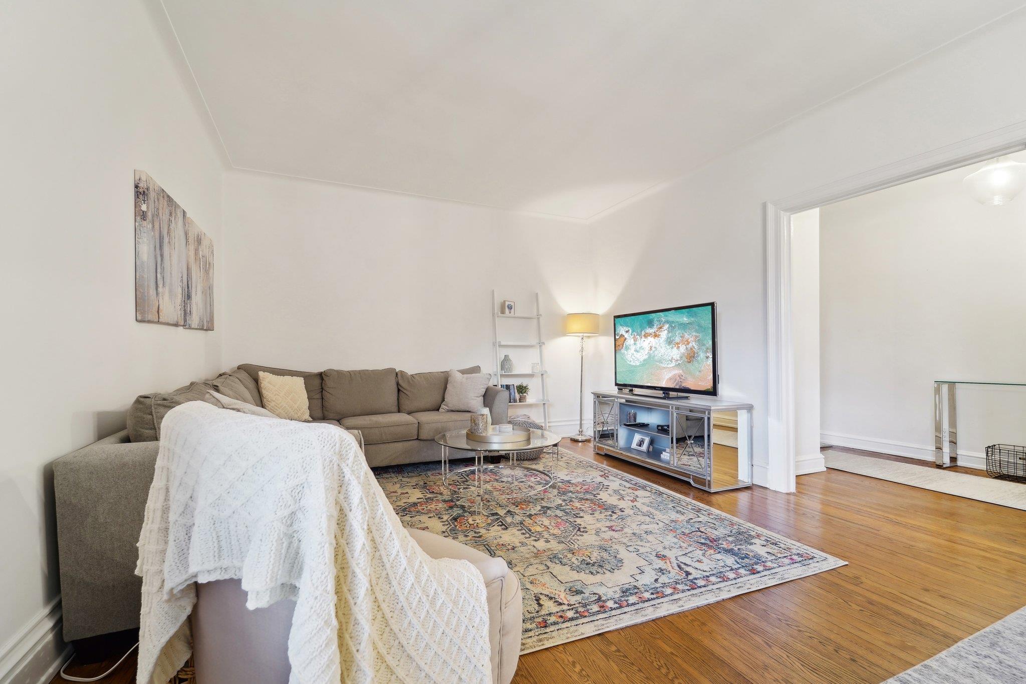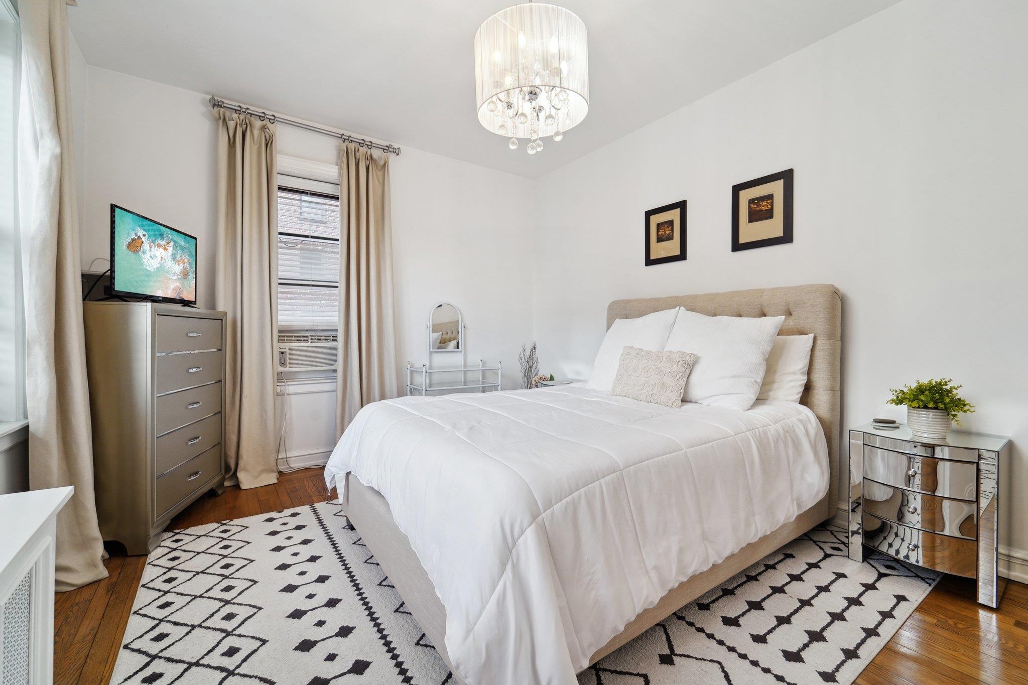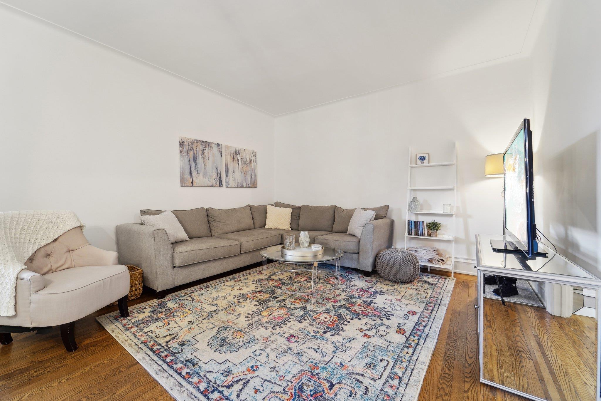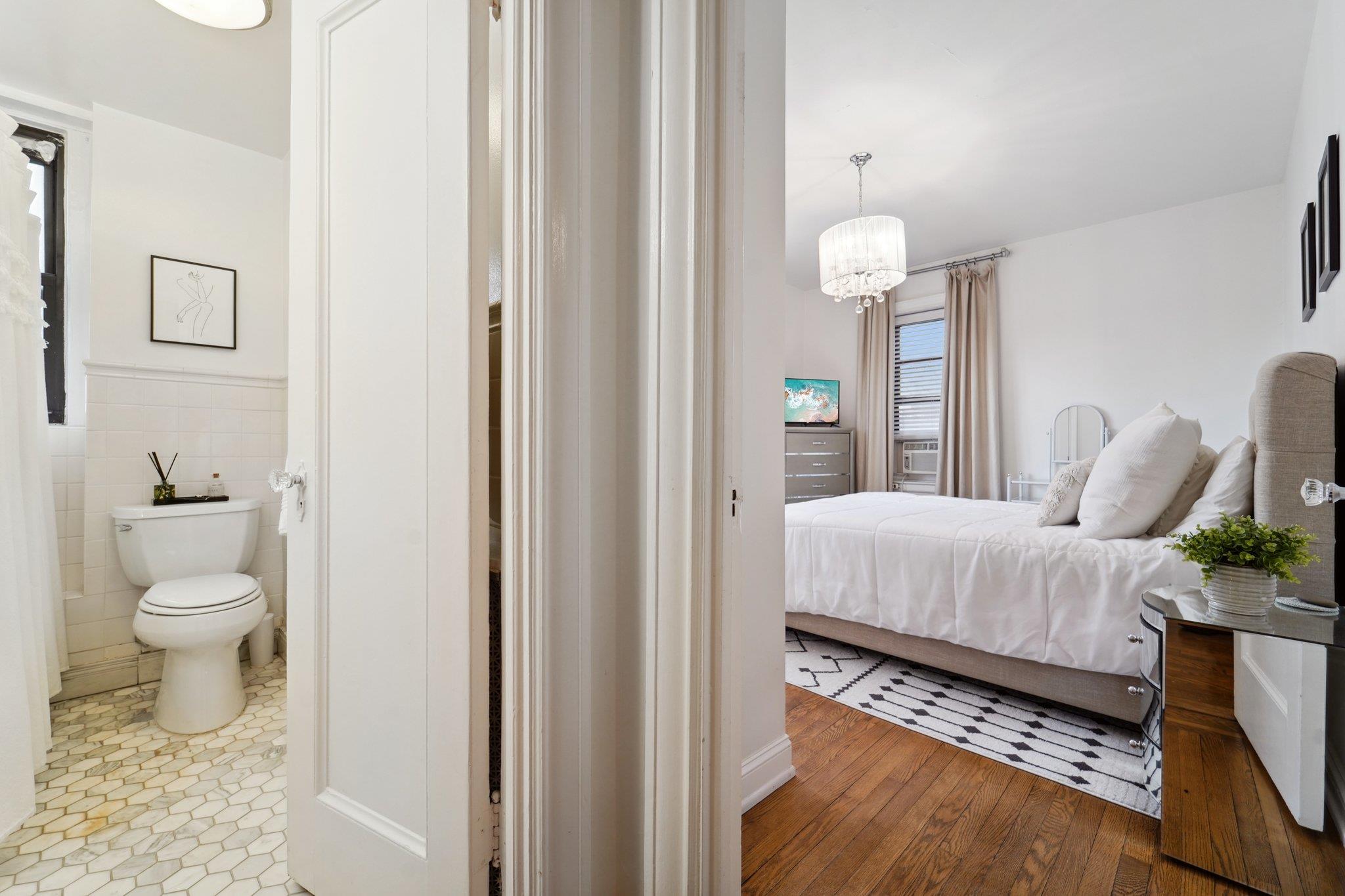 Welcome to Apartment 3J at 143 Garth Road in Scarsdale – a beautifully maintained, move-in-ready one-bedroom, one-bathroom co-op offering 850 square feet of bright and inviting living space. This spacious home features gleaming hardwood floors throughout, an updated eat-in kitchen with stone countertops, custom glass-and-wood cabinetry, and stainless steel appliances. The large living and dining area is filled with natural light, creating a warm and welcoming atmosphere. The generously sized bedroom offers ample space, and the home includes five closets, three of which are custom-designed, providing exceptional storage. The renovated bathroom features elegant marble flooring and modern finishes. Residents enjoy building amenities such as a laundry room, a private storage unit, and a beautifully landscaped terrace overlooking Garth Woods. The property is conveniently located just steps from the Metro-North station, offering a quick 30-minute commute to Manhattan, and is within close proximity to shops, dining, and the Bronx River Parkway and Trail. Residents are eligible for membership at Lake Isle Country Club, which offers golf, tennis, and swimming. On-street parking is available with a free permit from the Town of Eastchester. This pet-friendly building allows one dog with restrictions. Don’t miss the opportunity to experience comfort, convenience, and quality living at 143 Garth Road, Apartment 3J.