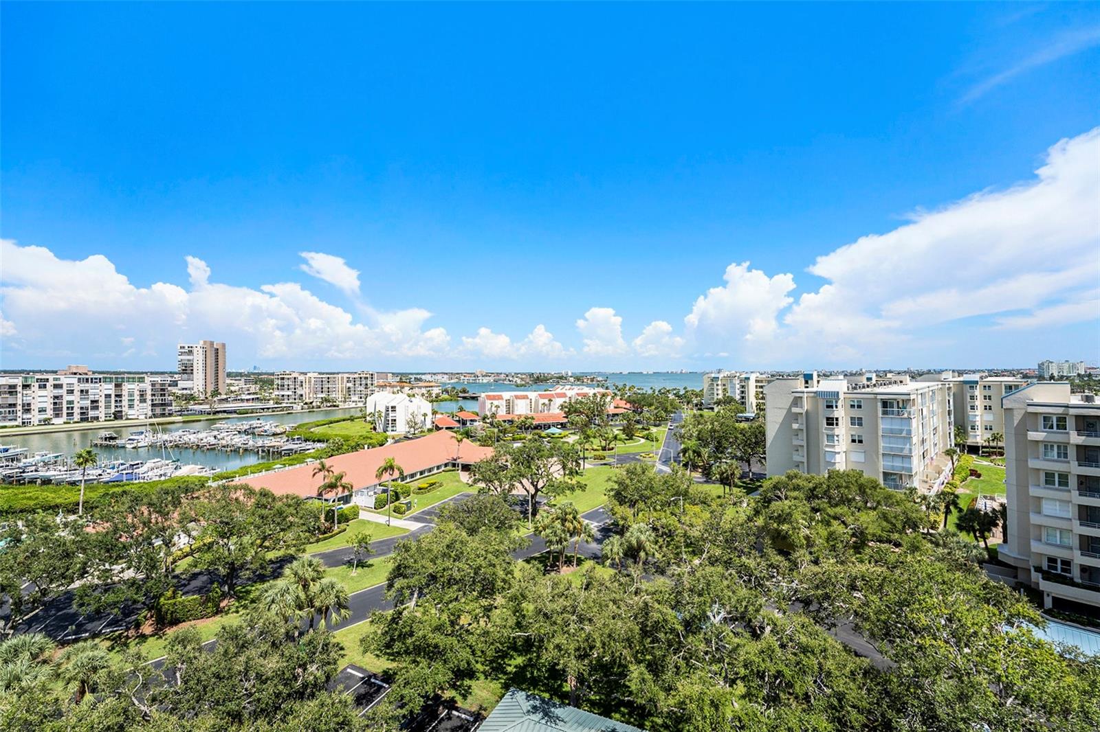 Beautiful 8th floor penthouse corner unit condo with incredible views of the Gulf, the Intracoastal, and downtown St Petersburg!!! This 2 bedroom, 2 bath, condo with an office has been completely renovated from top to bottom including new travertine tile floors, vinyl wind rated windows and sliders (with a transferable lifetime warranty), updated electrical, updated plumbing (including a tankless hot water heater), and new A/C. The walls between the main living area and kitchen were removed giving a great open floor plan, an expanded kitchen area, lots or natural light, and stunning views in every direction. The kitchen remodel features lots of custom cabinet space, beautiful quartz countertops, high end black stainless steel appliances, and an area set up for dual home offices. You can enjoy the sunset from the attached balcony or your bed in the primary suite featuring a fully remodeled bathroom with an oversized shower, dual sinks, and a walk in closet with custom shelving. Don't forget the guest bedroom, second fully remodeled full bathroom, or the large office with a murphy bed . You can start your day with coffee and sunrises on the front balcony, spend your afternoon enjoying the gated community amenities including waterfront walking trails , swimming pools, a wood shop, tennis and pickleball courts, and finish up your day with drinks, diner, and a sunset over the gulf on your rear balcony. Don't forget all the amazing restaurants in St Petersburg, the beautiful beaches, and shopping all within minutes of home.