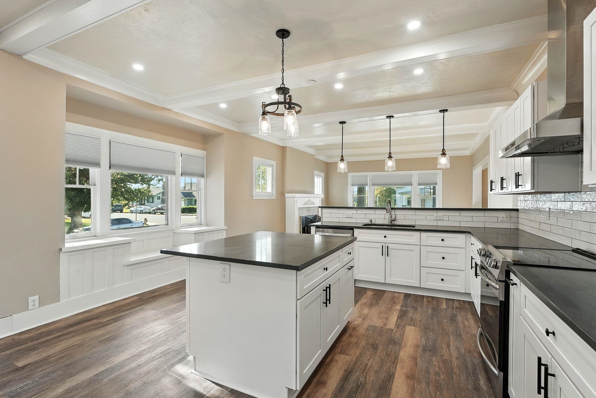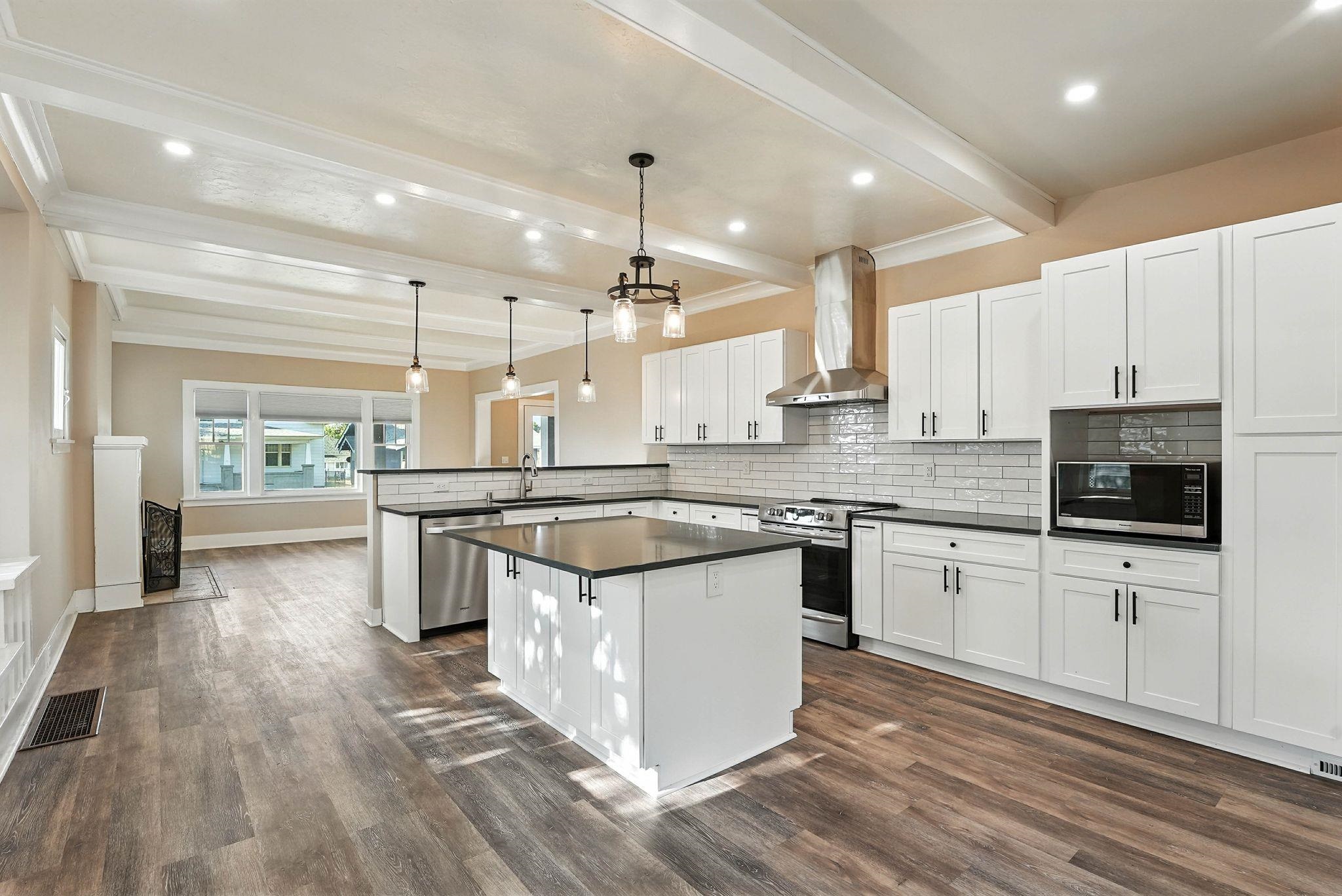 Old world charm with modern conveniences and income potential! 4 BR, 3 BA above ground with 2 complete studio apartments in the lower level with a separate entrance. Custom kitchen with soft close cabinets, solid surface counters, SS appliances, LVP flooring and center island. Very open and bright spaces with crown moldings, box beams, wainscot, built ins and window seats. Cozy LR with fireplace and wood burning insert. All 3 upper bathrooms are beautifully updated with custom tile, fixtures and details. 3 second floor bedrooms, one with en suite bathroom, double sinks and walk in closet. Updated electrical and panel, gas FA & HW, several vinyl windows and 3 separate electrical meters. Each studio apartment is fully complimented with full baths, kitchens/appliances and separate electric HW tanks. Enjoy afternoons on the covered front porch or on the spacious rear deck. Cyclone fenced yard, off street parking and 2 car detached garage. On STA bus route and located only minutes from Gonzaga University & SCC.