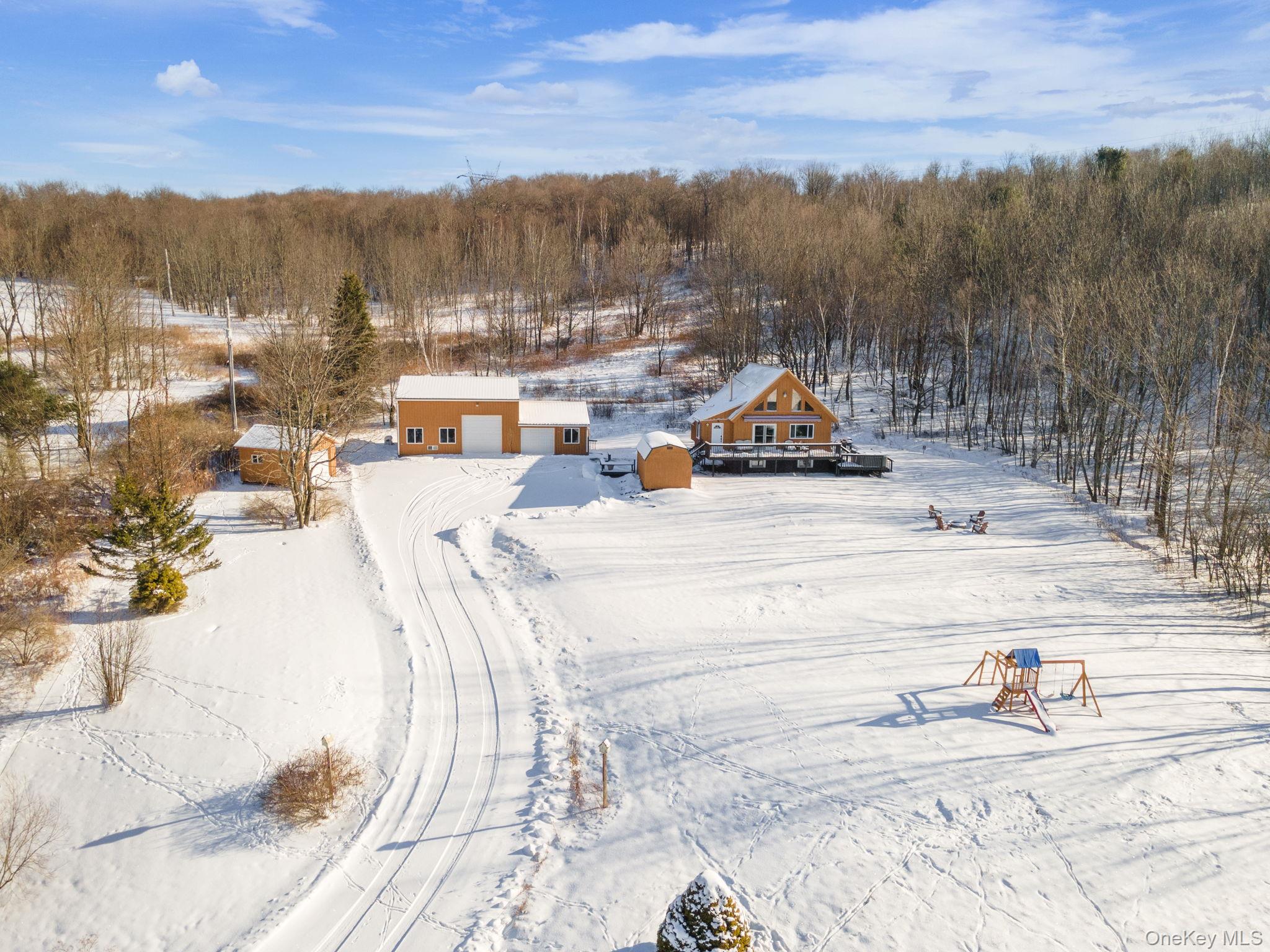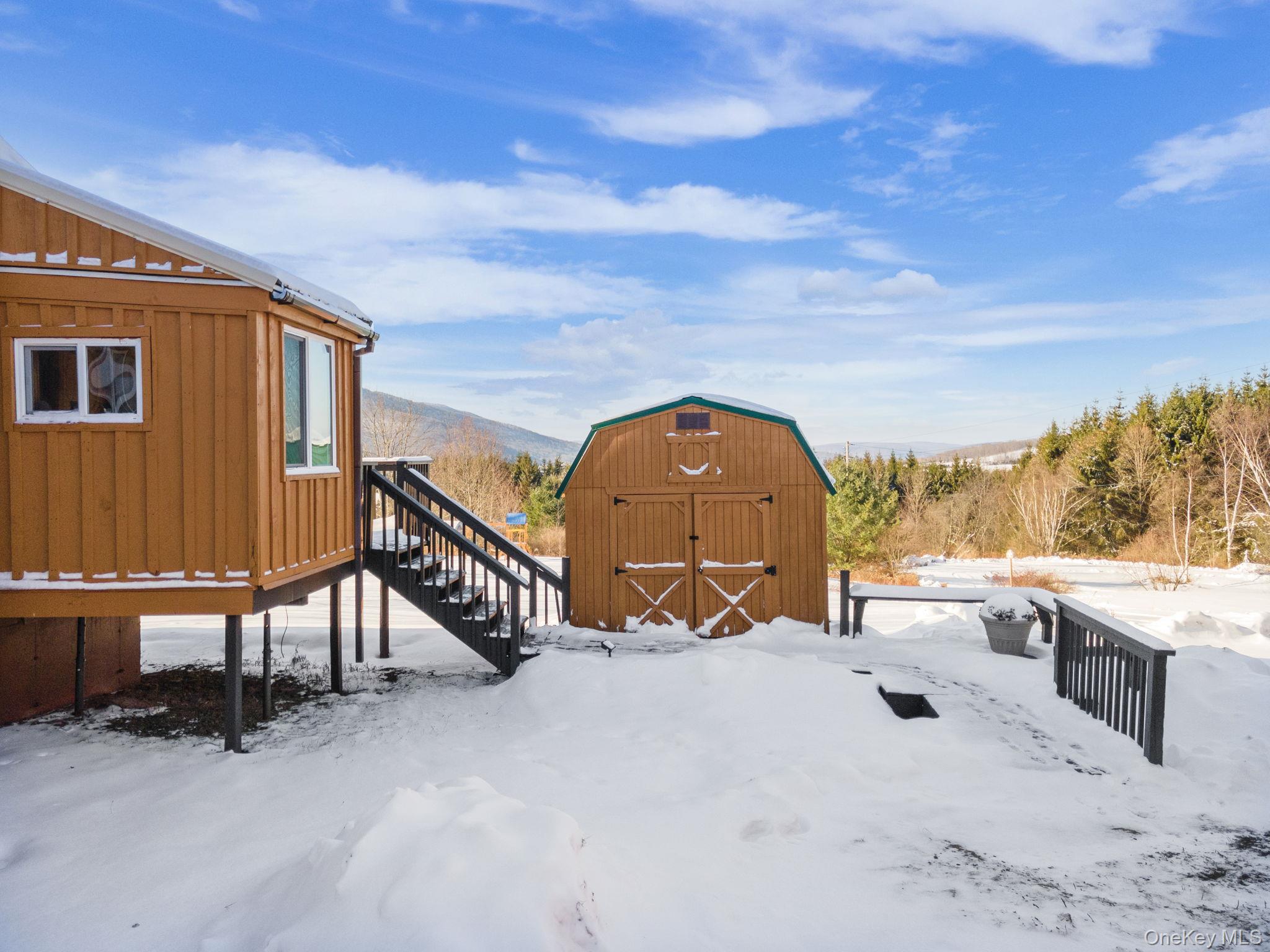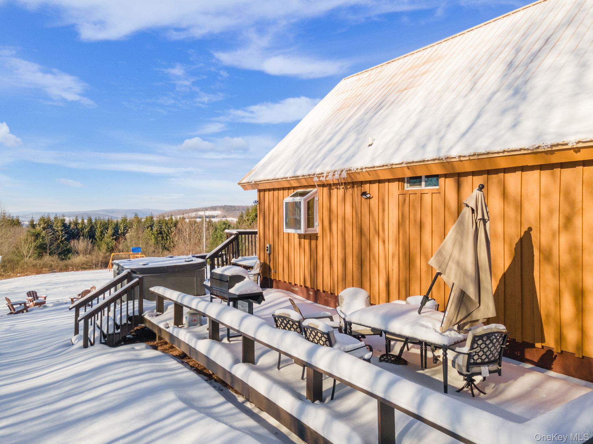 Welcome to the Perfect Picture Home in the heart of the Catskills, This Catskill Chalet+Studio appartment will provide you with ample space and relaxation with a total of 4 bedrooms and 2 full baths, on a private cul-de-sac road. The property has a successful established airbnb business, or you can live in one and rent the studio. Beautiful stunning views of sunrise and rolling hills +10 acres property with private trails. Step outside to a large deck, perfect for summer cookouts or relax on the porch with the Jacuzzi Hot Tub while viewing the scenic mountains surroundings, come in and enjoy a beautiful interior vacation setting with two story foyer inviting open floor plan and relaxing living room with a cozy wood-burning fireplace, Stainless Steel appliances in the Kitchen, and 2 bedroom on the main floor with a an additional bedroom on the loft. Partly finished basement for easy access to the laundry machines. The studio unit is attached to the garage with a separate entrance with one bedroom and a kitchenette and a full bathroom. You will also enjoy a generous car garage attached to the studio with ample storage and high ceiling. Metal Roof, New Septic was recenty installed. Conveniently located just minutes from the Village of Stamford,easy access to Mine Kill State Park, scenic hiking trails, and local ski destinations including Plattekill, Hunter, and Windham. Only 30 minutes to Cobleskill, and just 2.5 hours to the George Washington Bridge, this property offers the ideal balance of rural tranquility and accessibility. Whether you’re looking for a full-time residence or a weekend retreat, this home is ready to welcome you.