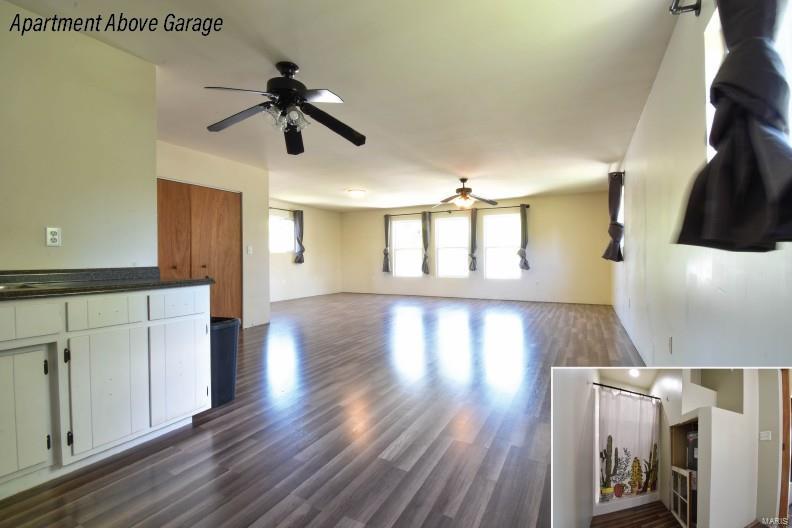 Car enthusiasts will love the heated, 2-car, 2-story drive-through garage with a 785 sq ft apartment above—complete with a full bath and kitchenette. Ample parking ensures room for everyone.