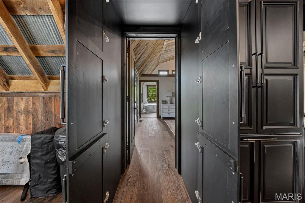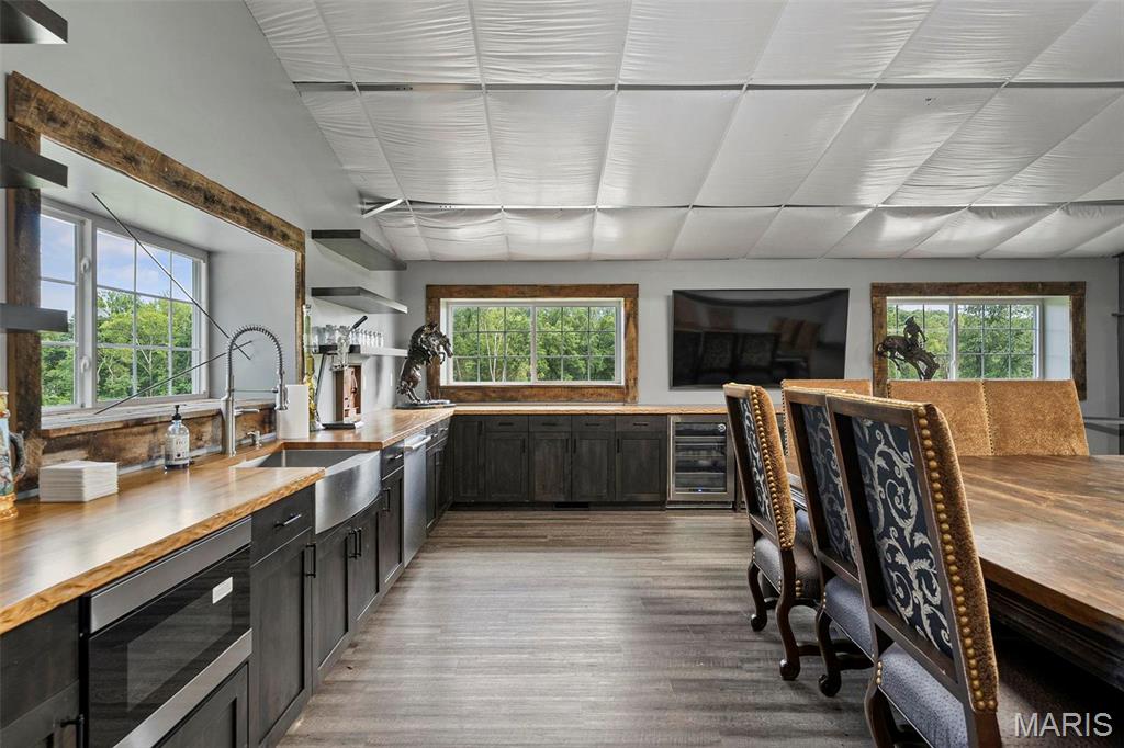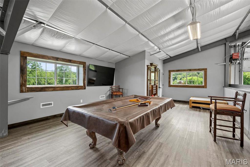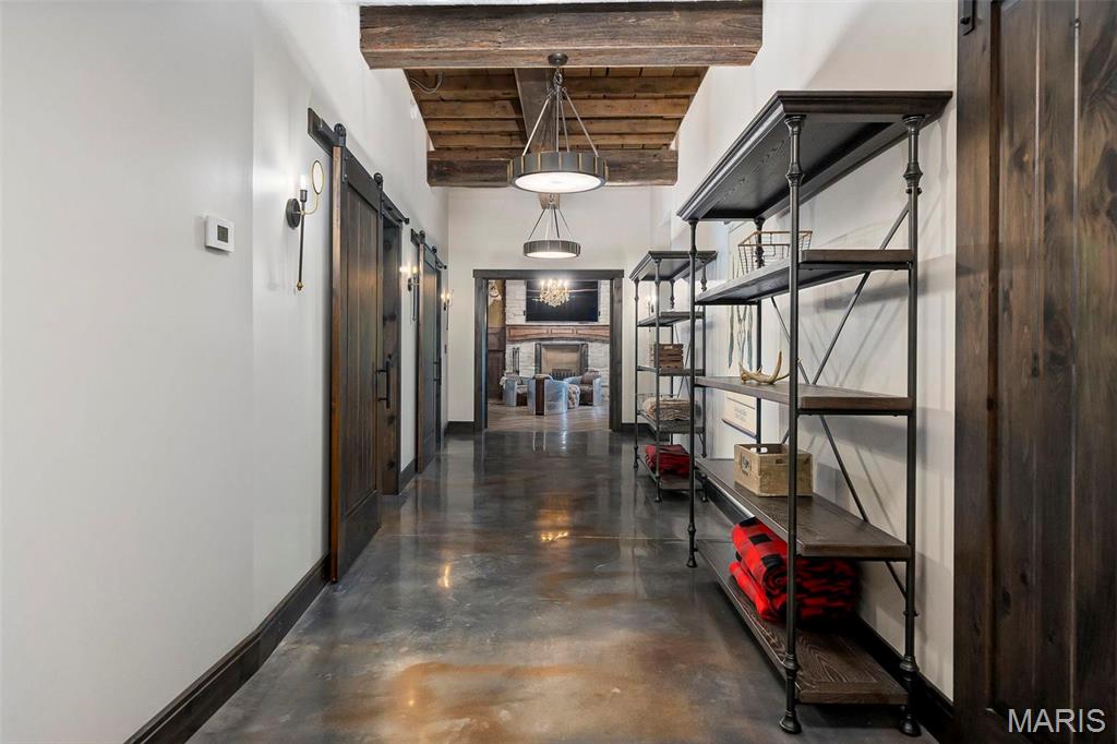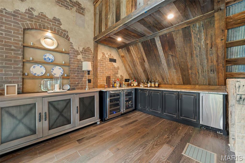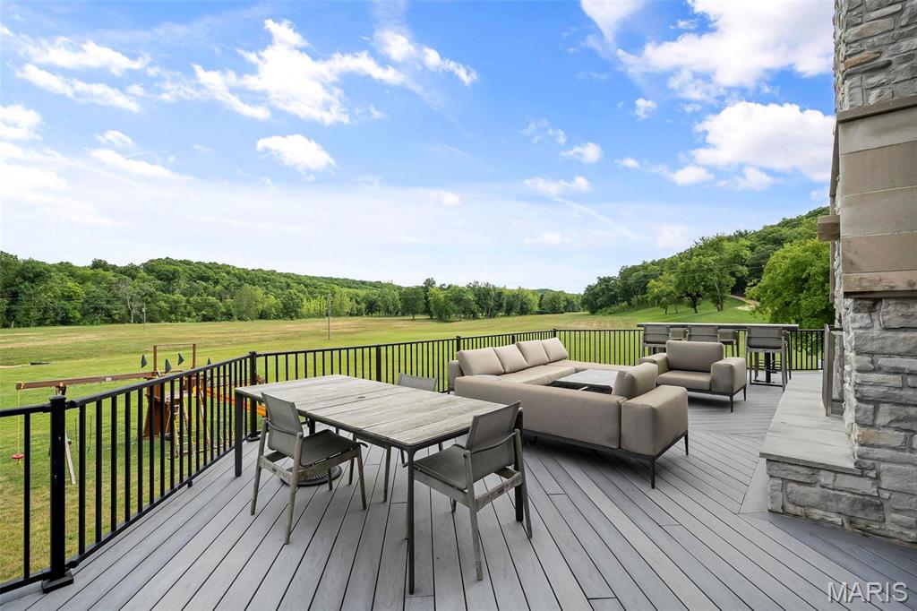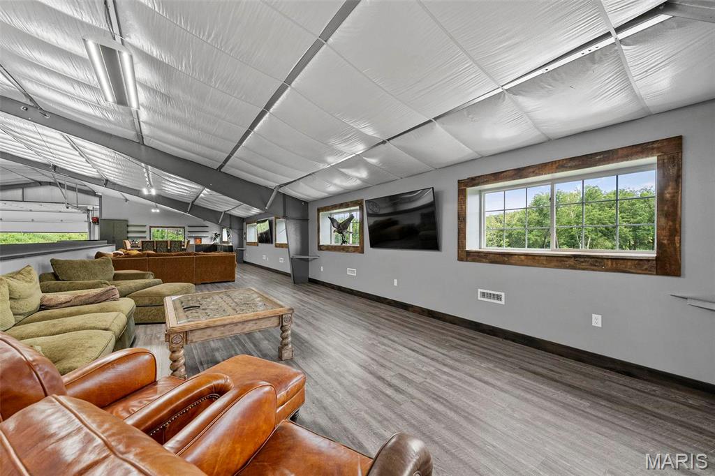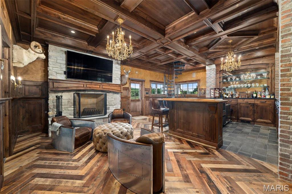 Situated roughly an hour and fifteen minutes SW of St. Louis, amidst the picturesque landscapes of the Missouri Ozarks, lies the Indian Ridge Creek Ranch. With a sprawling 620± acres, this property is a testament to serene living and architectural innovation. One of its main highlights is the meticulously restored dairy barn, transformed into an opulent residence with 7 bedrooms and 4.5 bathrooms, capable of accommodating up to 22 guests. This residence combines rustic charm with modern comforts, from its expansive living room and kitchen area to its spectacular downstairs bar. The ranch is the perfect place to entertain for business or family.