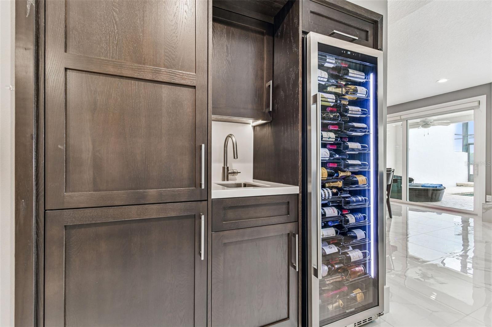 The chef’s kitchen is a standout, showcasing 42" wood cabinetry with crown molding, granite countertops, tile backsplash, a breakfast bar, and a cozy dinette. A convenient wet bar and a guest bedroom with en-suite bath are also located on the first floor, along with ample under-stair storage.