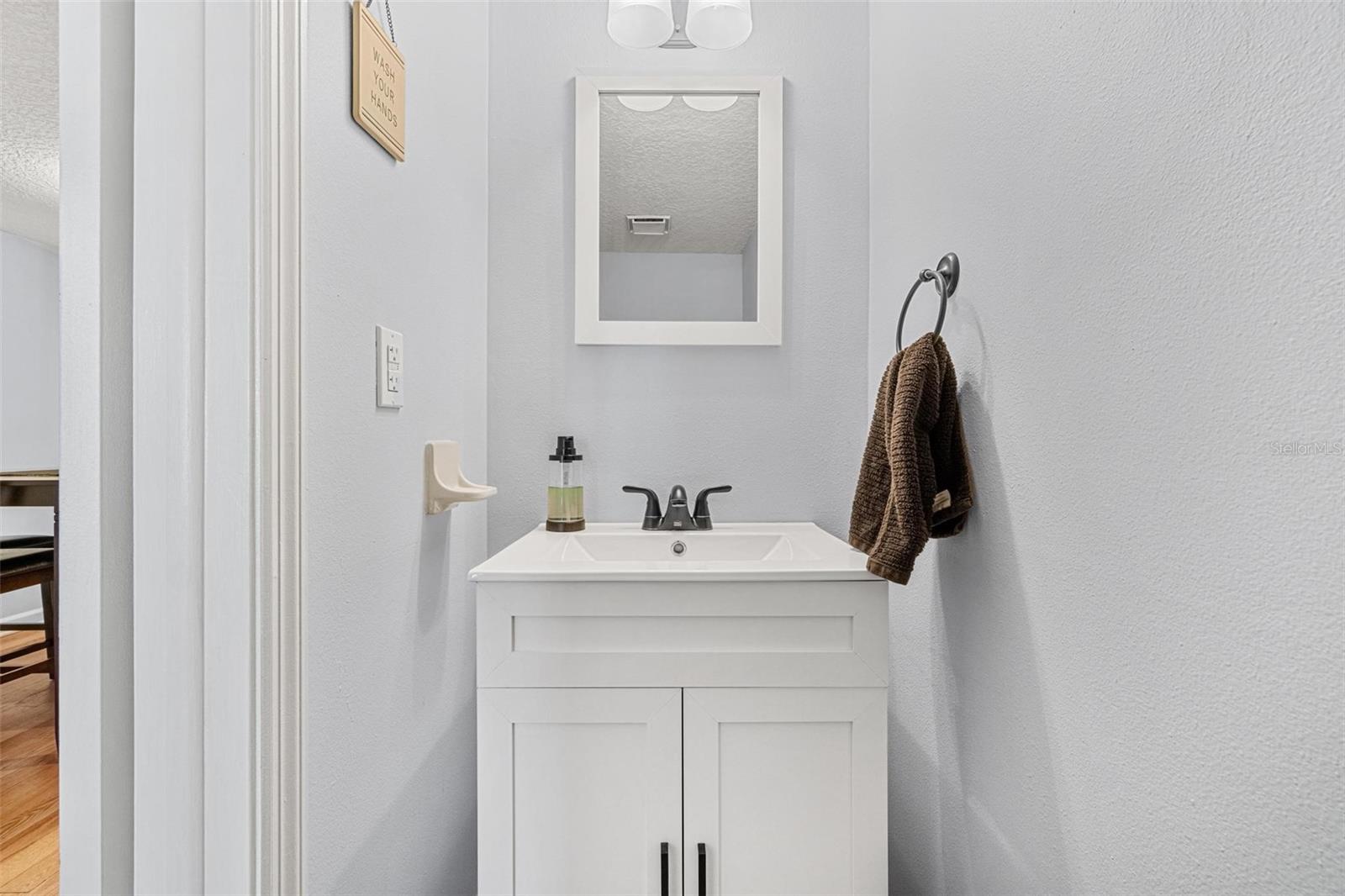 Upstairs, you’ll find two generous bedrooms, each with its own private en-suite bathroom. The upstairs bathrooms feature updated flooring, and one includes a new vanity. A convenient half bath downstairs has also been updated with a stylish new vanity.
