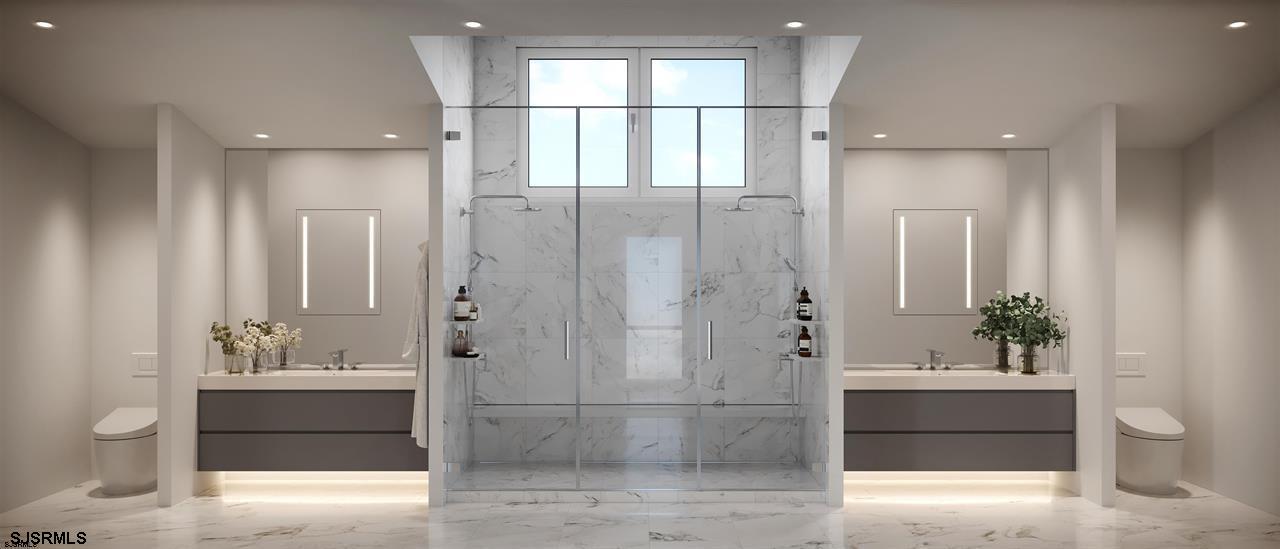 COMING SOON! Located at the highly sought after Southern end of Margate right across from the beach. Experience a new level of Luxury with finishes beyond your expectations. 6 Townhomes known as ‘Margate Towns’’. Just steps to the beach and Longport! Over 4,000 SF of indoor, outdoor and garage space with 4 bedrooms,3.5 bathrooms and 4-STOP ELEVATOR . Ground floor features a 2-car garage with panoramic aluminum doors and additional storage area. The first floor features a jaw dropping eat-in kitchen with two-tone custom high-end FENIZ cabinetry with island, quartz countertops and backsplash, french white oak engineered flooring throughout, and panel ready MIELE appliances including counter depth refrigerator, freezer, dishwasher, microwave, gas stove top, convection oven, speed oven/microwave, warming drawer, wine refrigerator, under cabinet vent hood, and built-in coffee machine. Ocean views can be enjoyed from your open floor plan with a spacious great room which flows on to a large deck. The second floor features 3 spacious bedrooms including en suite with own bathroom and its own front deck and the other two generous sized bedrooms share a bathroom. The second floor offers a laundry room with a sink. Don’t miss the master suite on the third floor that has a large walk-in closet, beverage center with Miele refrigerator and custom cabinets. Gorgeous bathroom with double custom wall-hung vanity/quartz countertops, an EPIC sized shower including Porcelanosa floors & walls, dual shower. Ditra floor heat with Thermostate, and finish the master suite off with your own private balcony! This townhome will have rear patio, smart thermostats, car charging station, Anderson E- Series Windows, and so much more! CALL TODAY FOR A PRIVATE SHOWING! ONE OF A KIND NEW CONSTRUCTION! Pricing is promotional and pre-completion pricing.