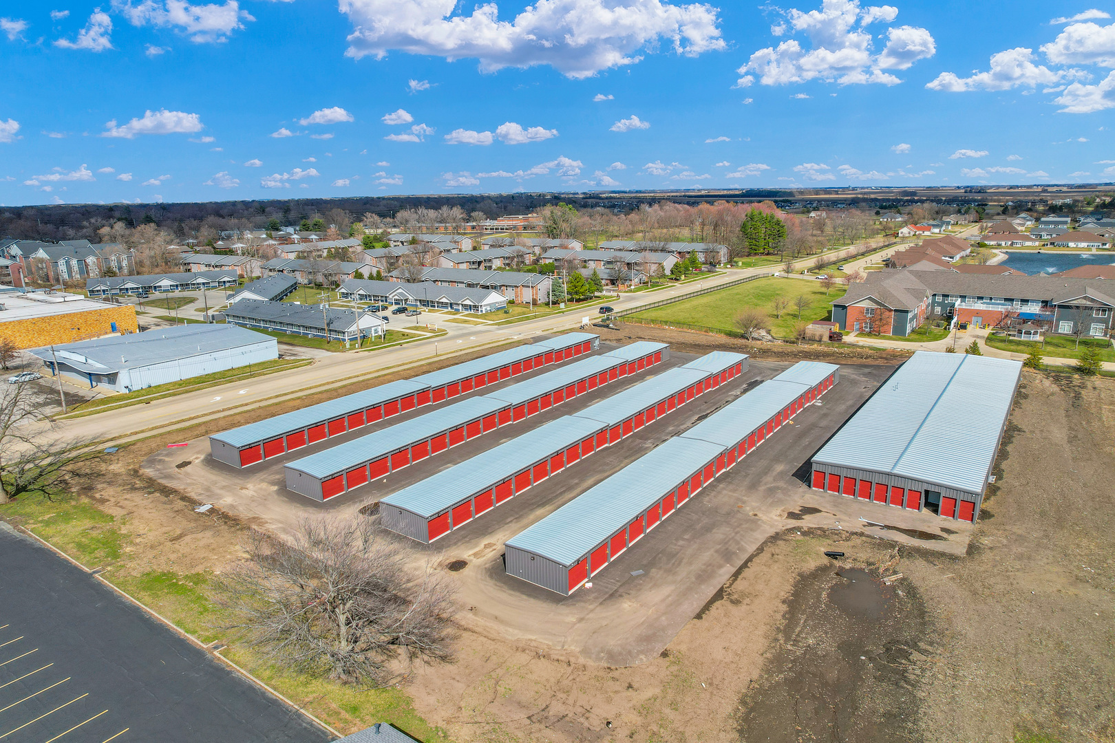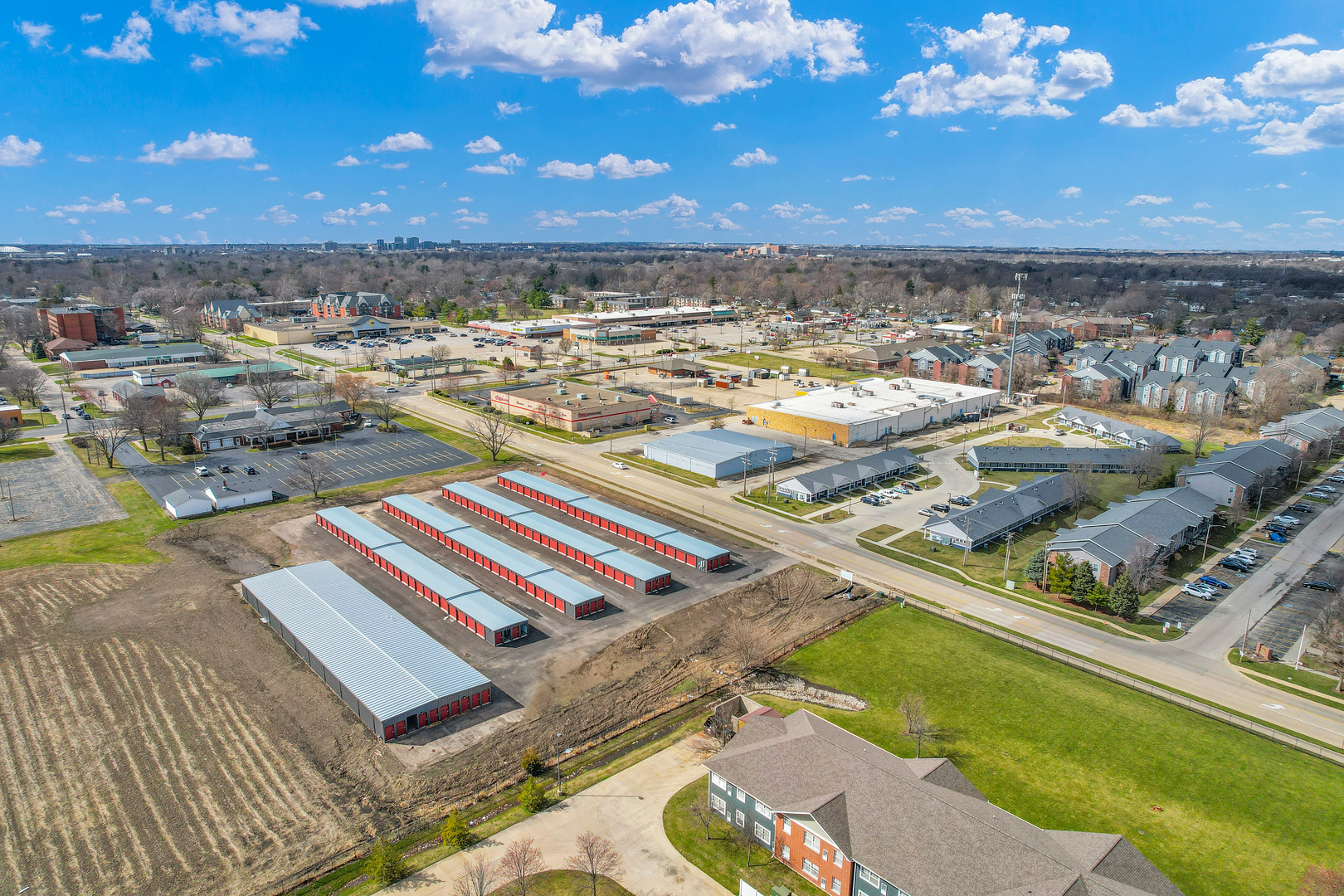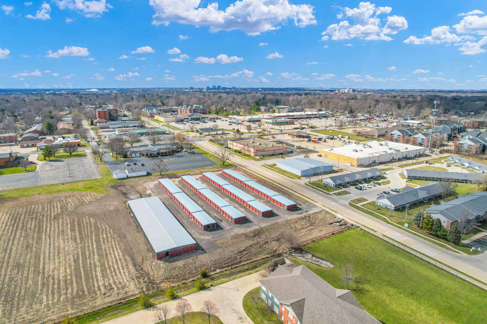 Brand new construction self storage complex in Urbana IL with 314 storage units. The complex features a fully automated security system with cameras, asphalt paved surface with low maintenance metal buildings, fence and automated gate at the entrance. Prime location situated adjacent to residential neighborhoods, apartment complexes and 2 miles to University of Illinois campus. The complex has four non climate controlled buildings with 10x10 and 5x10 units and one climate controlled building with 10x10 and 5x10 units.