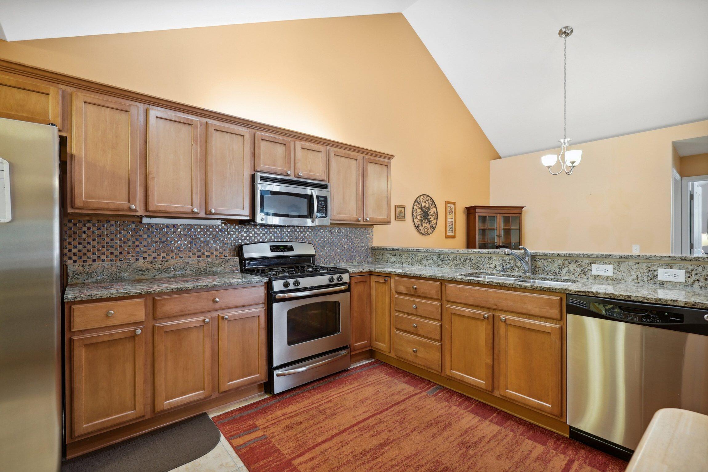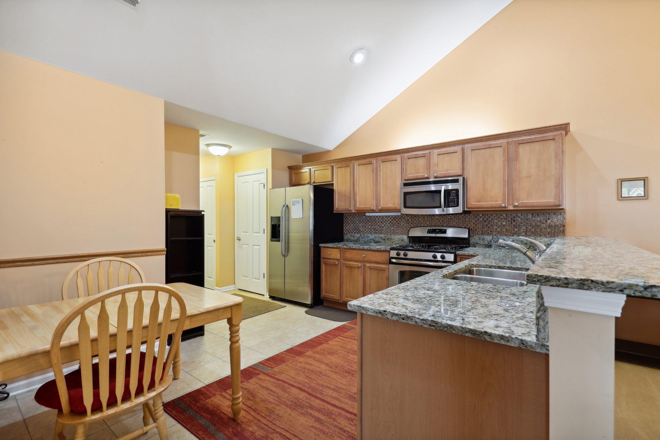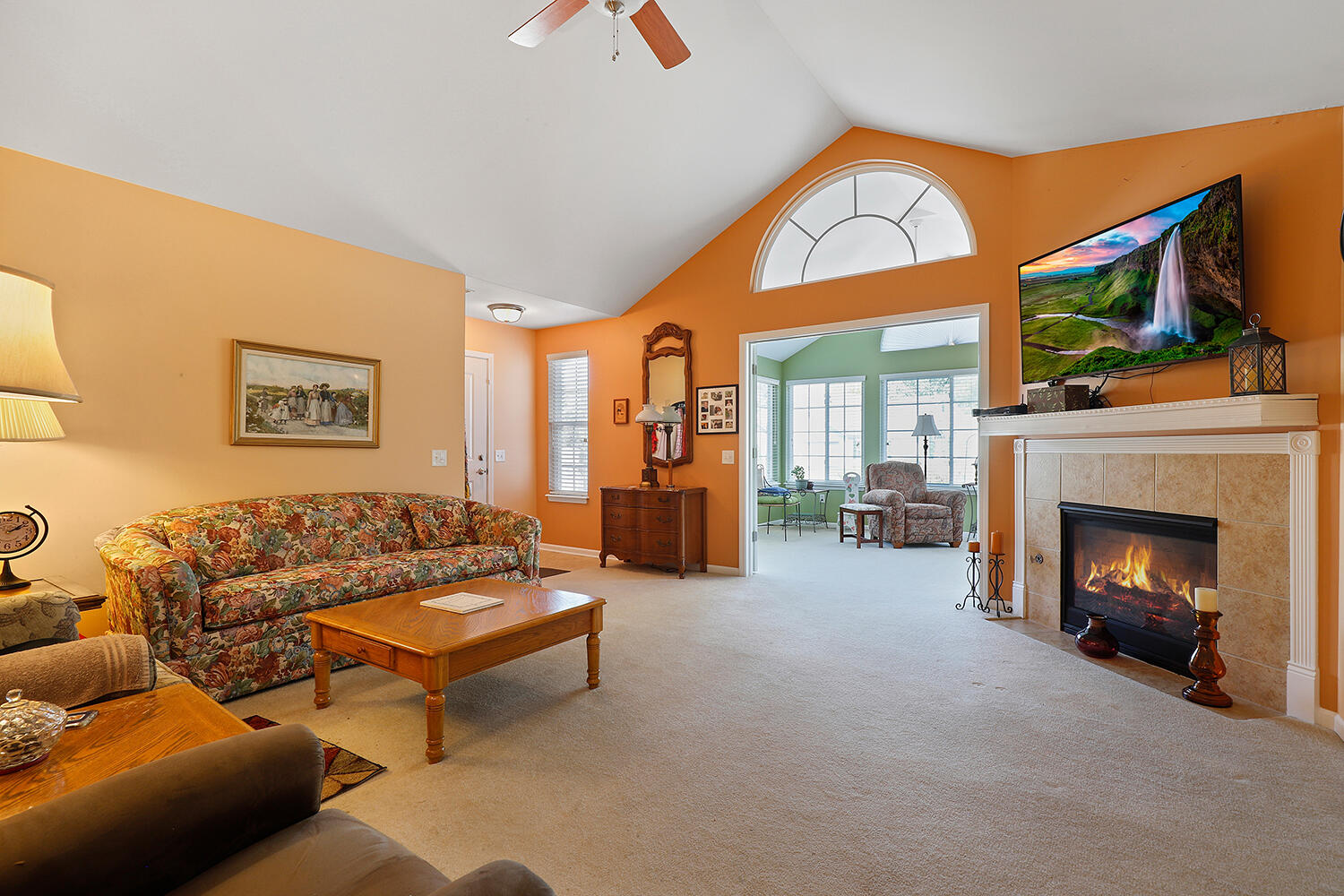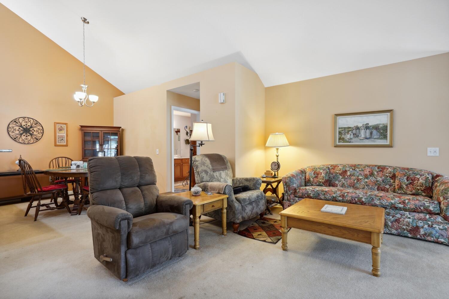 Welcome home to the Villas at Vale Park! Don't miss this desirable stair-free home with an open concept floor plan featuring dramatic cathedral ceilings and tons of natural light throughout. Gather with friends in the inviting living room, anchored by a timeless gas fireplace. Chef's will love the spacious eat-in kitchen boasting a large breakfast bar, granite counters, tiled backsplash, stainless steel appliances, and large pantry. The generous dining area is the perfect place to host holiday meals. Relax all year long in the sunny all season room with scenic views of green space and grasslands. At day's end, retreat to the tranquil primary bedroom with cathedral ceiling and ensuite bath with step-in shower. This home offers another bedroom, full bath, convenient laundry, bonus storage room, attached 2 car garage and private patio. Take advantage of the pool, gym, and clubhouse at the Villas at Vale Park! Great location, close to shopping, dining, parks, schools and more. Come see today!