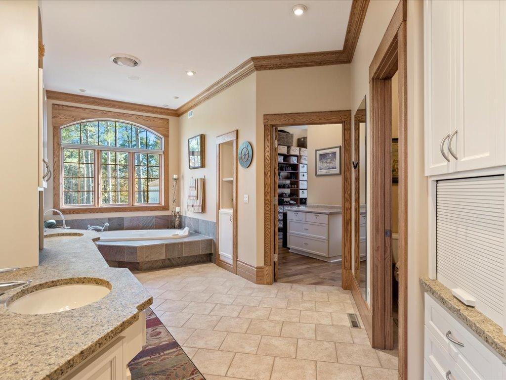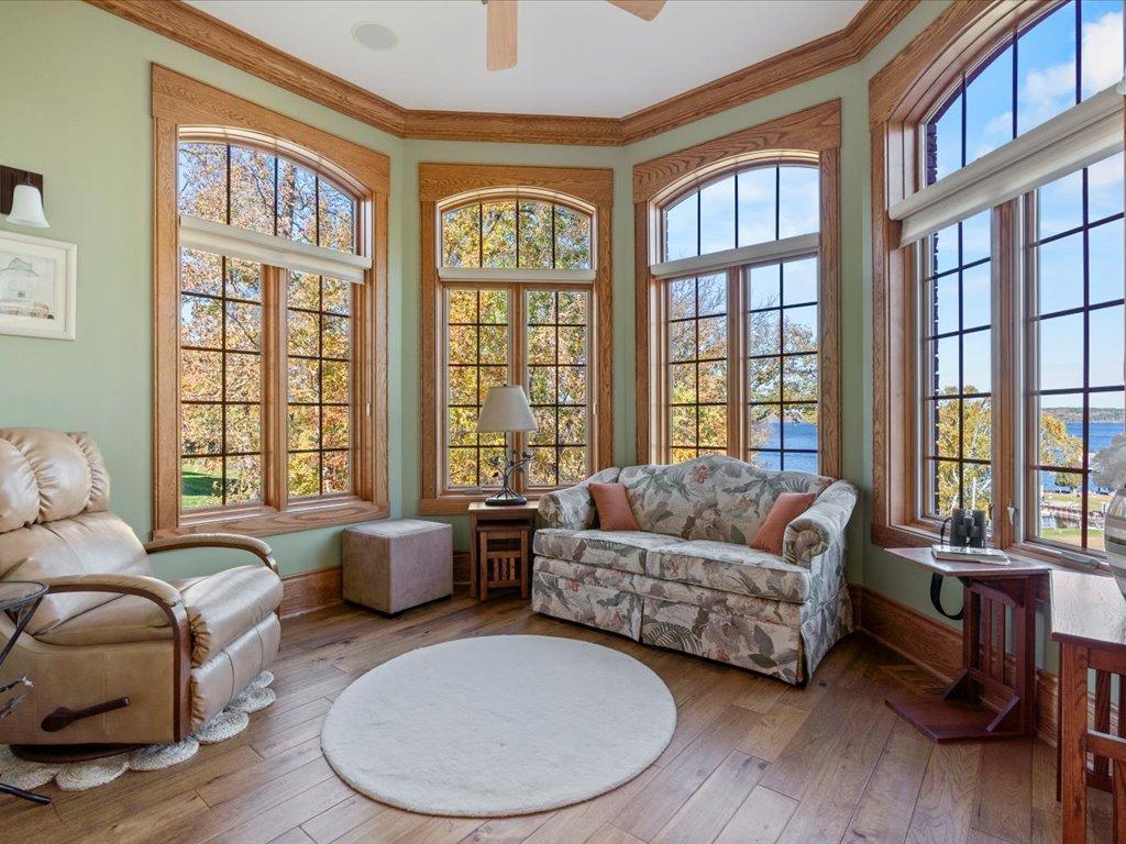 Exquisite estate on beautiful Leech Lake/Walker Bay, "Muskie Capital of the World" this home was meticulously designed to create the ultimate in stately lake living. This immaculate 4 bedroom, 6 bath home features an open floorplan with many luxurious appointments such as hardwood flooring, vaulted ceilings, big lake views, 3 fireplaces (double & triple sided), lakeside sunroom and a full granite chef's dream kitchen. The main-level primary suite features lakeside views, fireplace, private plush bath with separate tub and shower, large walk-in closet w/ laundry & utility sink. Main level Den/Office, powder room, large foyer, spacious living room w/ wood 3 sided fireplace