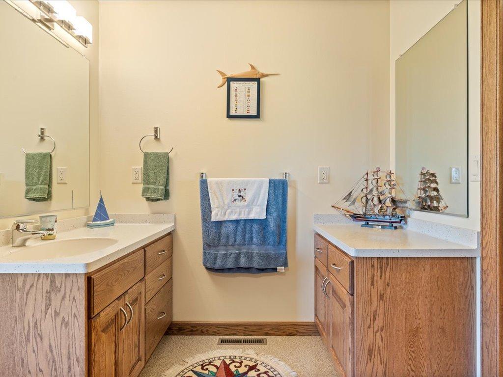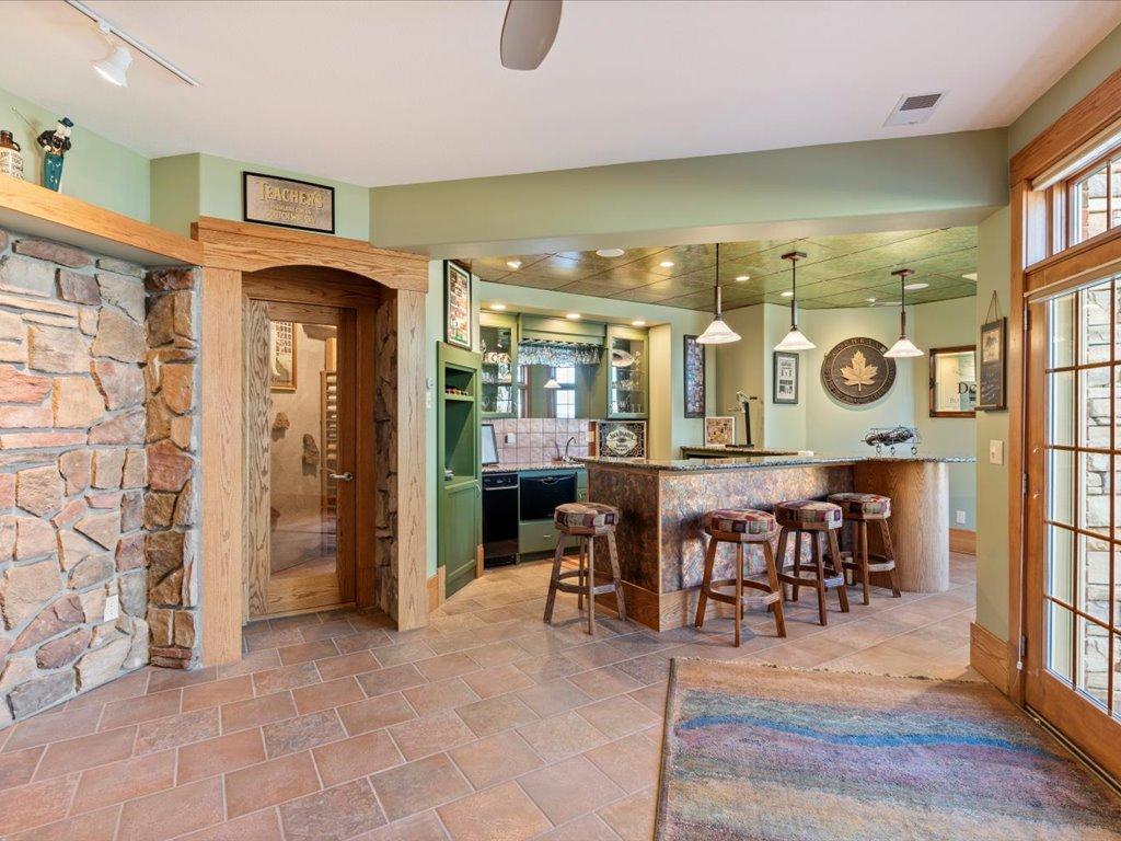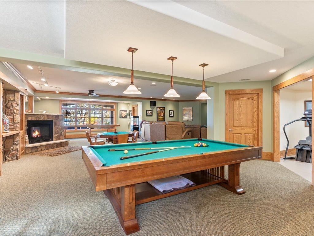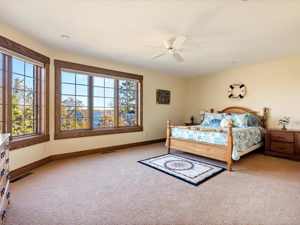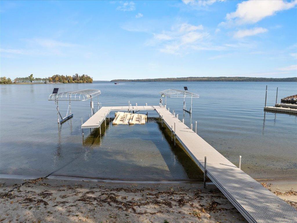 & walk out from gourmet kitchen/dining to lakeside deck. The upper level is large enough for additional family and guests w/ a large lake side en-suite & kitchenette, additional large bedrooms and upper level laundry. Head down and entertain in your rec room; theatre seating, pool table, poker table, custom made shuffleboard, private wine cellar, bar and gym. Enjoy sunrises & spectacular lake views through the large lakeside windows throughout the home or from the main level sunroom. Step out to the multiple lakeside patios with spectacular views & spaces to relax or entertain. The beautiful lot is extensively landscaped and hosts in-ground sprinklers, lighting and more! With its prime location on Walker Bay, this property boasts level elevation down to 25 feet of perfect excellent sand shoreline. Take advantage of the abundance of storage with a 3 car attached finished and heated garage. The ultimate in luxury, privacy & ideal in town location home is located right along the Heartland Trail for miles of adventure, Minnesota’s largest bodies of water Leech Lake, or enjoy all of Walker's small-town shops/restaurants. This home is ready to go, being sold TURN-KEY ( See exclusion list, exclusion and features sheet in supplements)