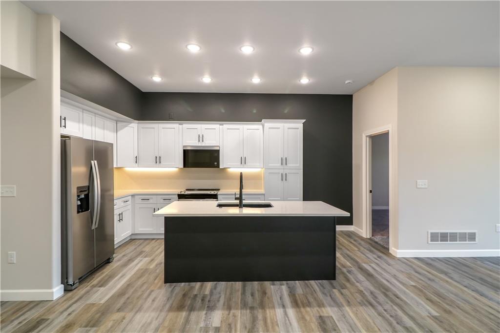 NEW (!!!!) lake front townhome for sale at the elite Residences at Bryson Lake! A MAIN FLOOR PENTHOUSE! Now is your opportunity to own the BEST unit on Bryson Lake. 3 LARGE bedrooms - 3 bathrooms - + a half bath. Room for furniture, personalization, and everyone to spread out! Luxury vinyl plank flooring throughout and carpet in all bedrooms, freshly painted walls, doors, and the kitchen island, a 2 car garage, spacious patio overlooking the beautifully maintained pond, a front covered porch with a Larsen storm door and ring doorbell added. The kitchen has whirlpool stainless steel appliances and quartz countertops. The living room has large windows and slider to access a large patio with views lake, green space and walking trail. THIS UNIT IS AMAZING! $125 / month covers clubhouse access, gym, lake privileges, the community pool, walking trail, play ground area, lawn care, irrigation, high speed fiber internet and basic cable.