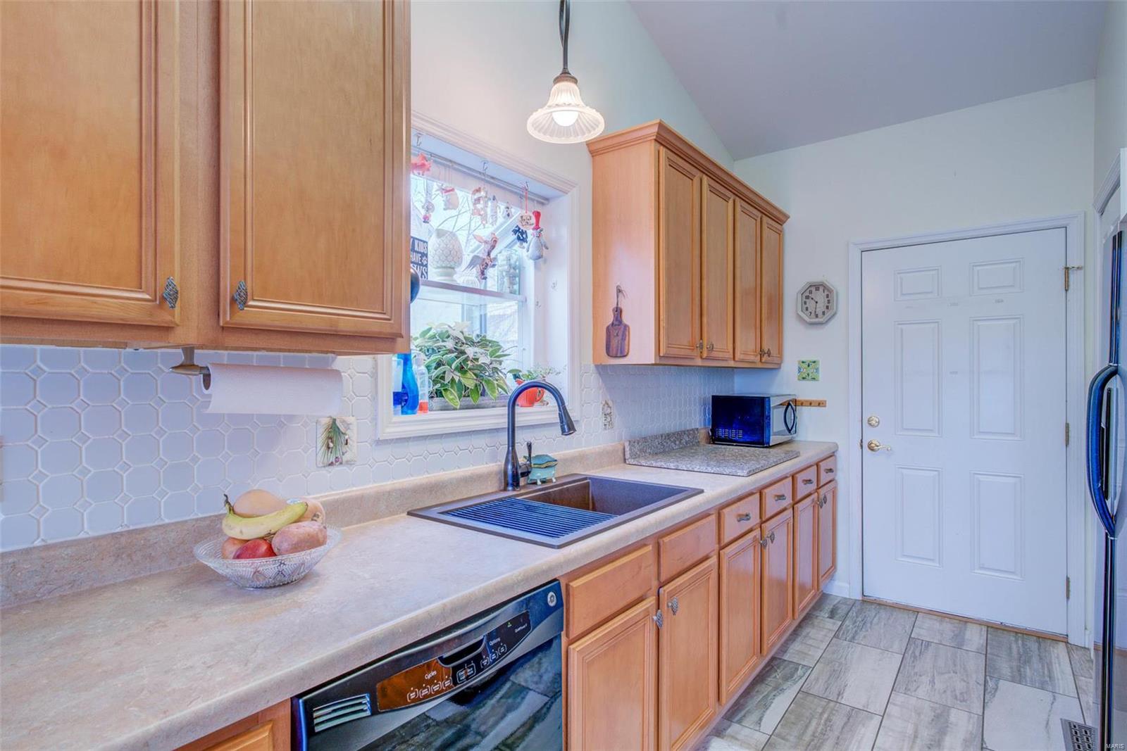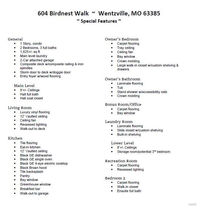 Fabulous 2+ Bedroom, 3 Full Bath Ranch w/an open floor plan! Living room features luxury vinyl floors, 12’ vaulted ceiling, & walk-out to the beautiful composite deck. Wow the light & bright eat in kitchen which features cool black appliances, a little green house (which allows you to grow your favorite herbs inside) window above the farm style Kraus kitchen sink, & a bay window in the breakfast area that lets all of the natural light in. Owner’s suite boasts a tray ceiling, bay window & has a wonderful full bath & large custom walk-in closet. Flex Room which can be used for an office or THIRD BEDROOM, laundry room, & hall full bath complete the ML. LL extends living quarters with a large rec room, 2nd bedroom w/ensuite full bath, & plenty storage. Outside, you will enjoy a composite deck, composite railing & iron spindles & a 2-car attached garage. Condo/free standing homes monthly fees are $224.00. Zero lot line house, owner owns land only that house sits on. Yard is common ground.