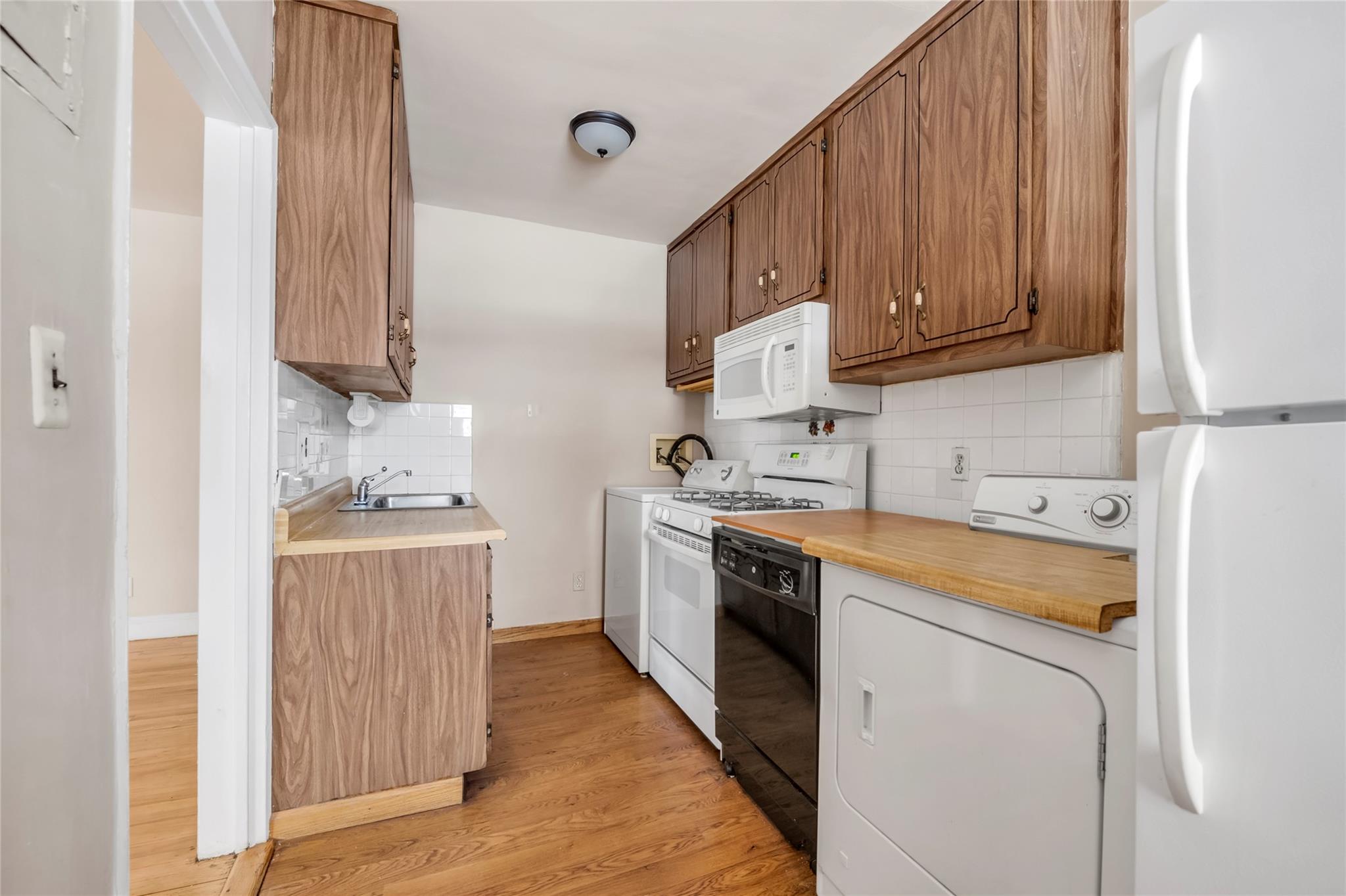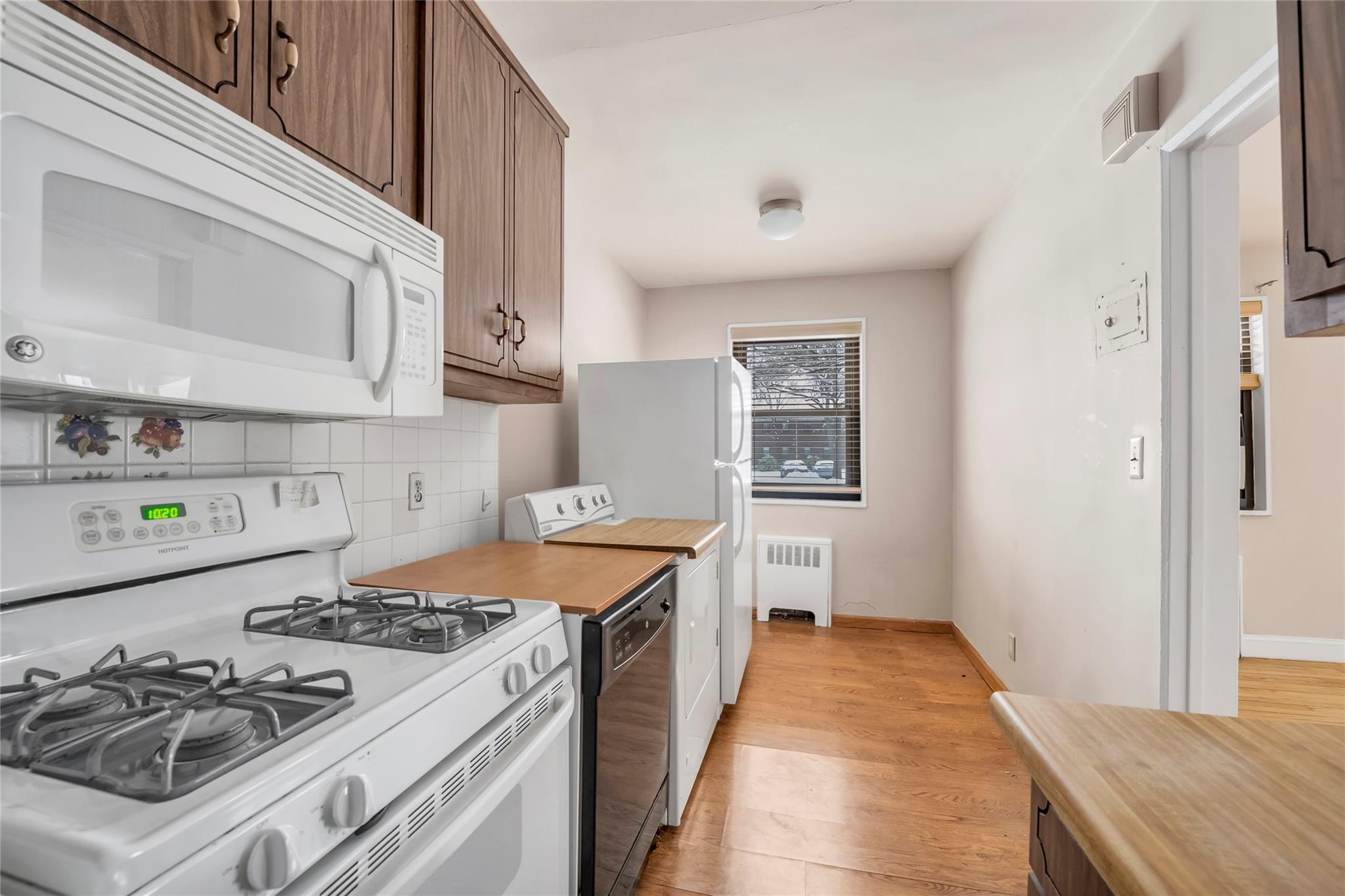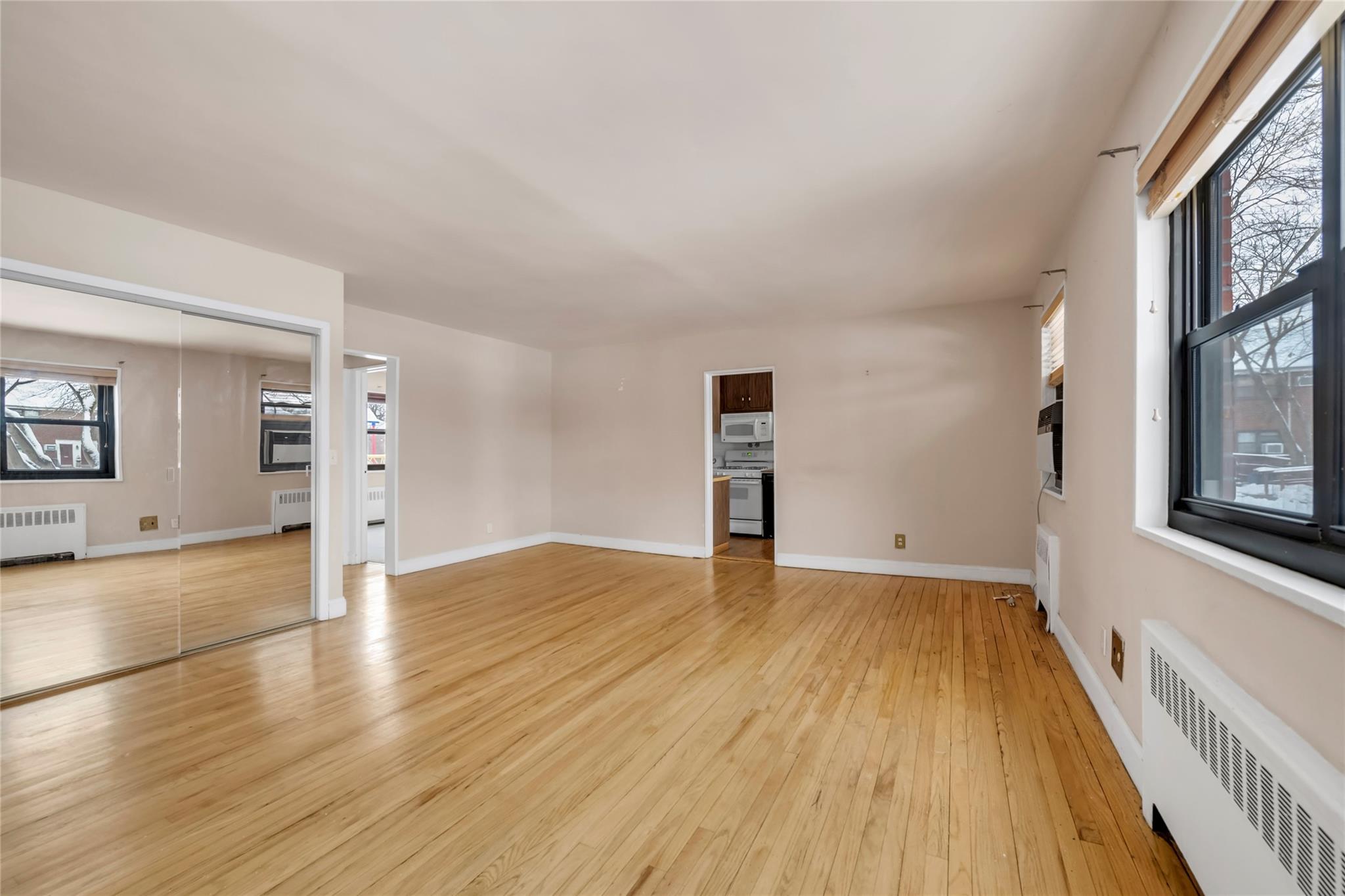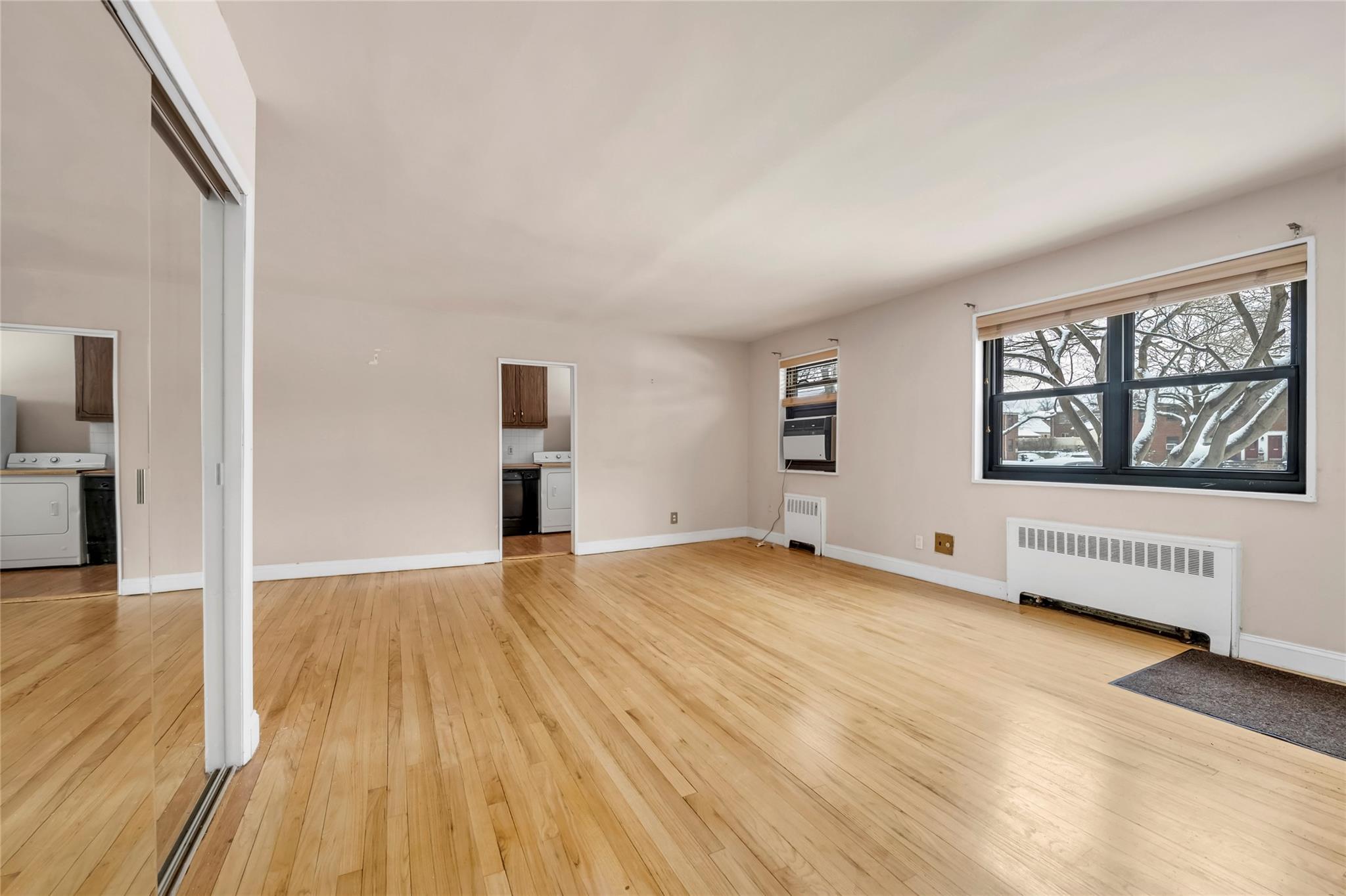 Welcome to Clearview Gardens! This garden apartment sits nestled in a courtyard and features hardwood flooring, ample closet space, a galley kitchen with a washer, dryer, and a dishwasher. Newly renovated bathroom features custom tilework. 2 large bedrooms with closets. Near schools, shops, & transportation.