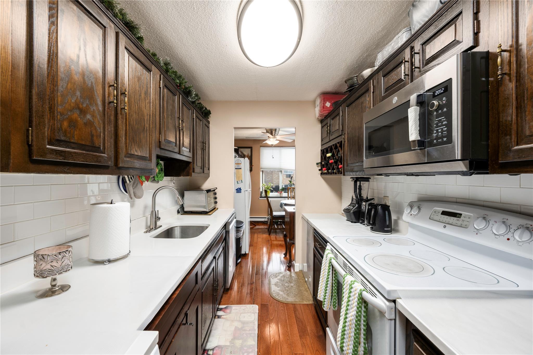 Prime Location! This bright and inviting 2-bedroom, 2-bathroom condo sits in the heart of North Yonkers. A commuter’s dream, it’s just four blocks from the Glenwood Metro-North station, with easy access to Grand Central. The Bee-Line Bus #6 conveniently stops right outside. This pet-friendly building includes a deeded indoor garage parking space and a private storage unit. The expansive 1,200 sq. ft. layout offers a generous living room with space for a home office, plus a separate dining area with dual access to an oversized terrace—perfect for enjoying warm days. The primary bedroom features a walk-in closet and a private en-suite bathroom. Additional highlights include in-unit laundry, abundant closet space, and a well-kept, low-rise complex with an in-ground community pool. Low taxes and maintenance fees make this an affordable and desirable place to call home!