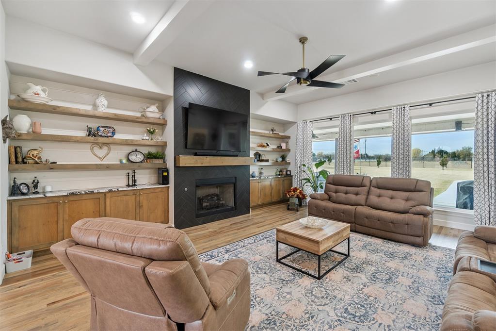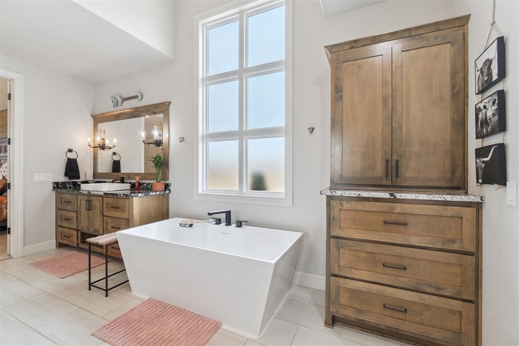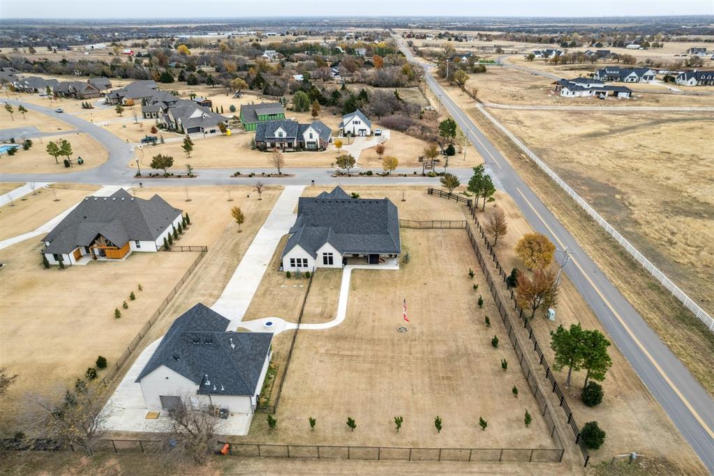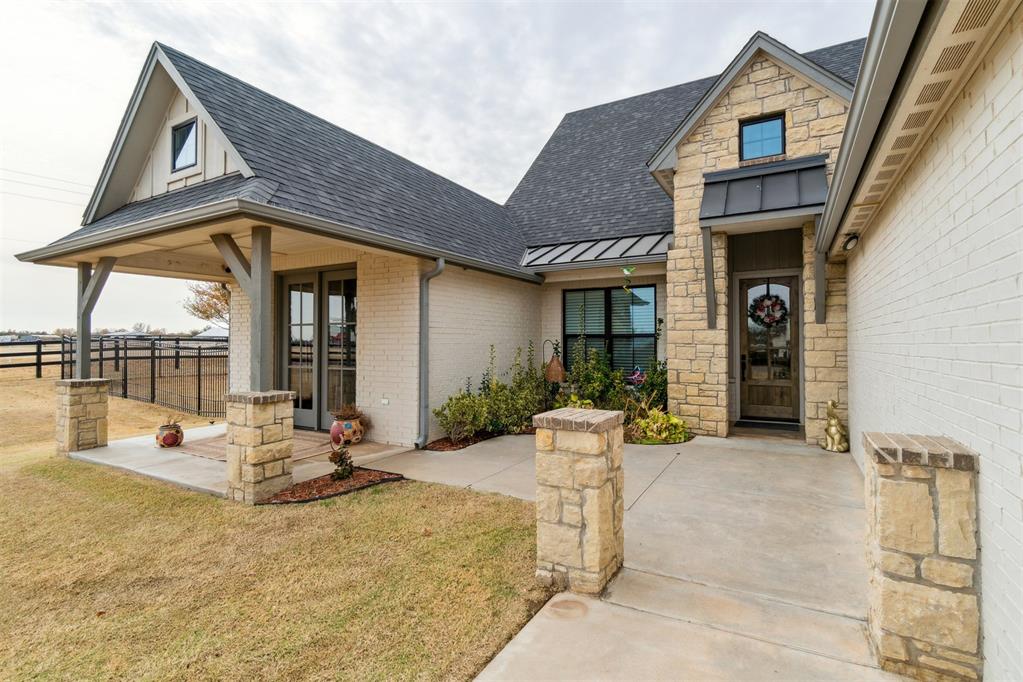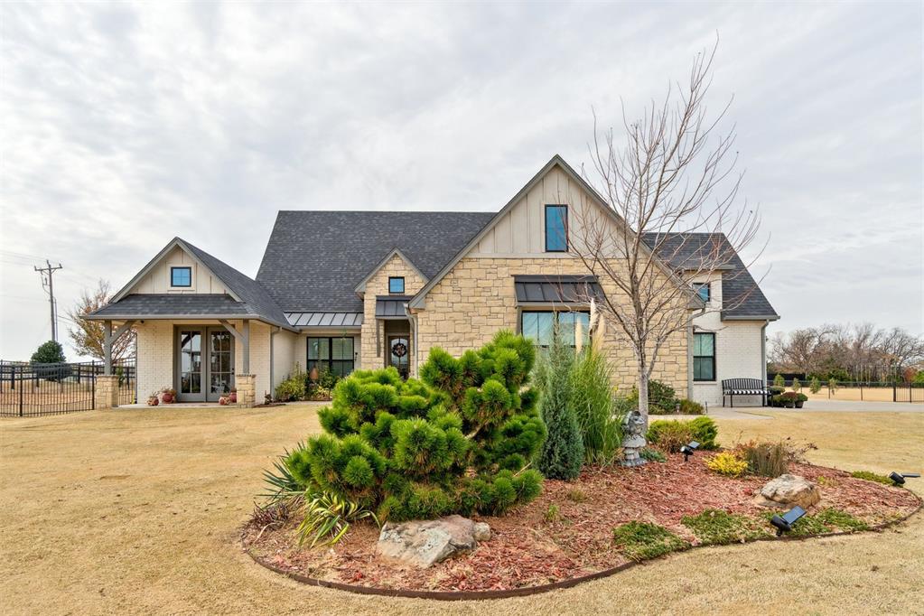 Country living at its finest, this Yukon home offers thoughtful design and generous space across 3 bedrooms, 3.5 baths, and a dedicated study. An expansive yet inviting entrance leads into a living room with soaring ceilings and hardwood floors that ground the main gathering areas. The kitchen anchors the home with abundant island seating and a built-in refrigerator, while each bedroom offers a full bath and walk-in closet for privacy. One guest suite includes a private covered entry and patio at the front of the house.