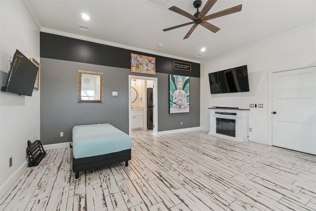A 1,200+ sq ft climate-controlled outbuilding includes a 700 sq ft shop with 14' ceilings, a 12' x 14' overhead door with a commercial Wi-Fi opener, multiple 220v outlets, and sidewalks surrounding the structure with keyless entry points. The 525 sq ft casita serves as an efficiency-style apartment with a full kitchen and fireplace, plus a large walk-in shower, laundry hookups, a walk-in closet, two refrigerator water lines, a covered porch, three natural-gas cooking lines, and Ubiquiti Wi-Fi—ideal for guests, multigenerational living, or workspace needs.