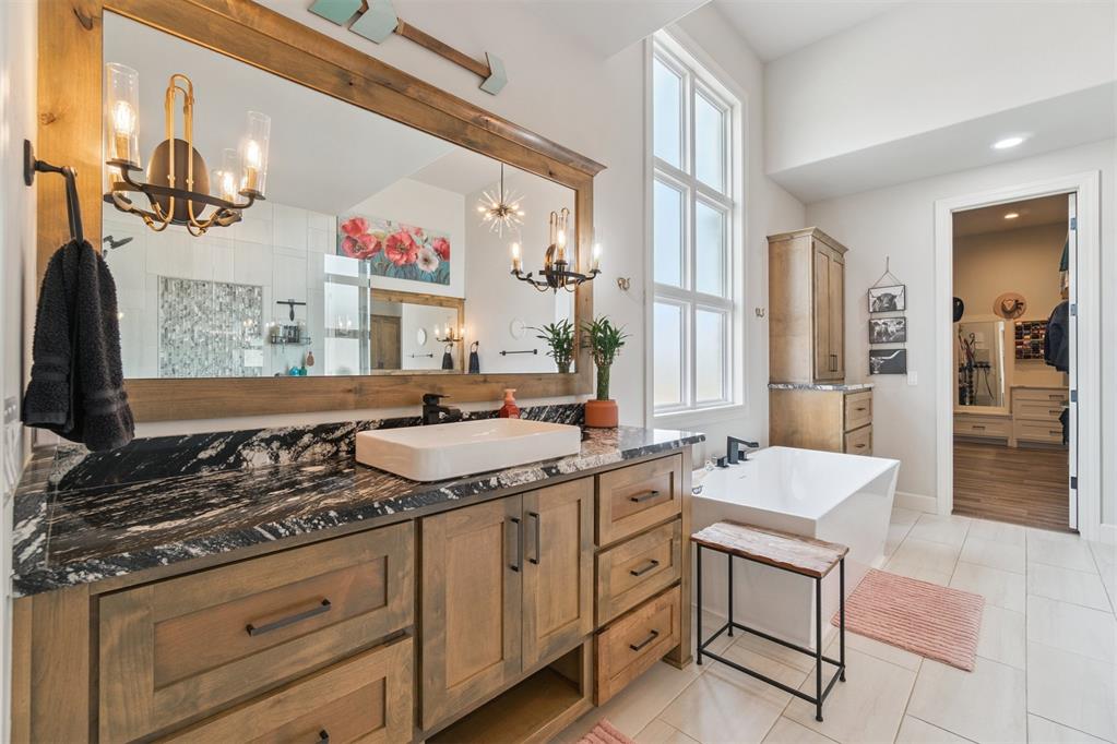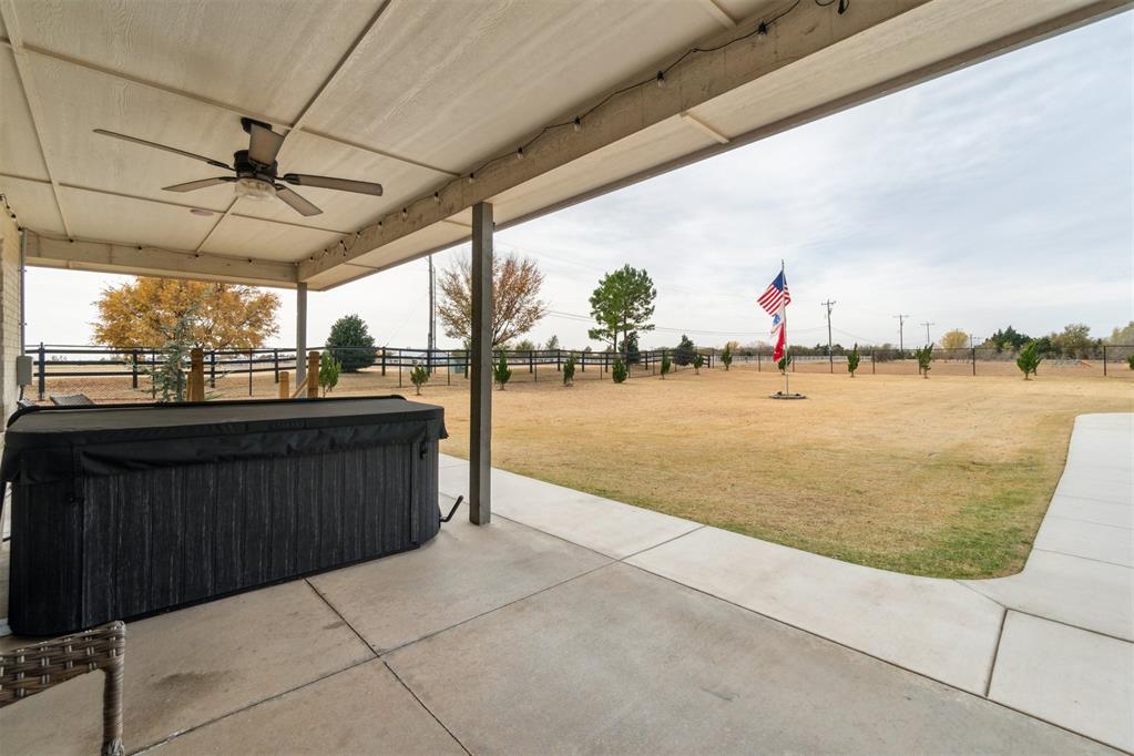 Outdoor living features an oversized patio overlooking a neighboring horse ranch, a natural-gas brick fire pit with a 240,000 BTU Montana Firepits burner, and 210V service for the hot tub. Recent concrete expansions include a larger patio and a connecting sidewalk to the casita, creating a cohesive outdoor layout. The property also offers new fencing, a 6' gate behind the shop for easy access, and a 12-zone sprinkler system to maintain the yard. And on those hot summer days, the neighborhood pool is just a few yards away for quick access.